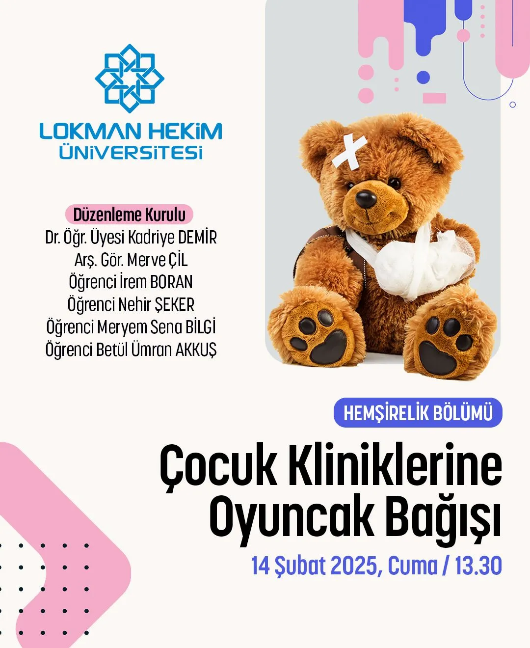 Lokman Hekim Üniversitesi Hemşirelik Bölümü öğrencileri, "Çocuklarda Oyunun Terapötik Kullanımı" dersi kapsamında hazırladıkları özel oyun materyallerini hastanelere bağışlayarak çocuk hastaların tedavi süreçlerine destek olacak. 102142 kodlu dersin final ödevi olarak tasarlanan bu materyaller, çocuk kliniklerinde kullanılmak üzere 14 Şubat 2025 Cuma günü bağışlanacak.