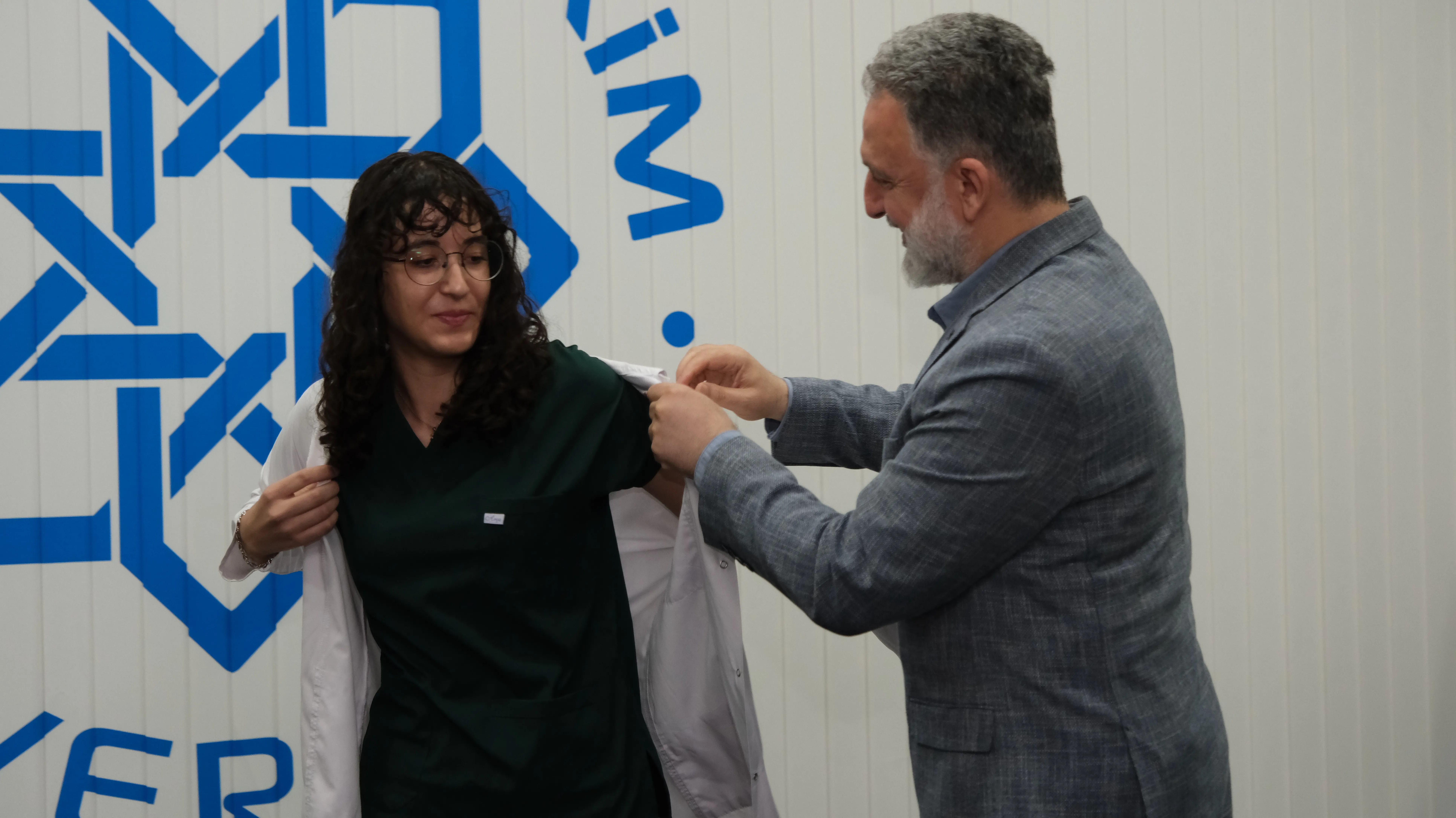 Müzik dinletisinin ardından törenin en önemli anı geldi.Öğrencilerimiz, akademisyenlerimizin eşliğinde beyaz önlüklerini giyerek meslek hayatlarının başlangıç yolunda beyaz önlüğü sadece bir giysi değil; bilgi, sorumluluk ve güvenin sembolü olarak taşımanın heyecanını ve gururunu yaşarken, bu gurur verici ana aileleri şahit oldular.