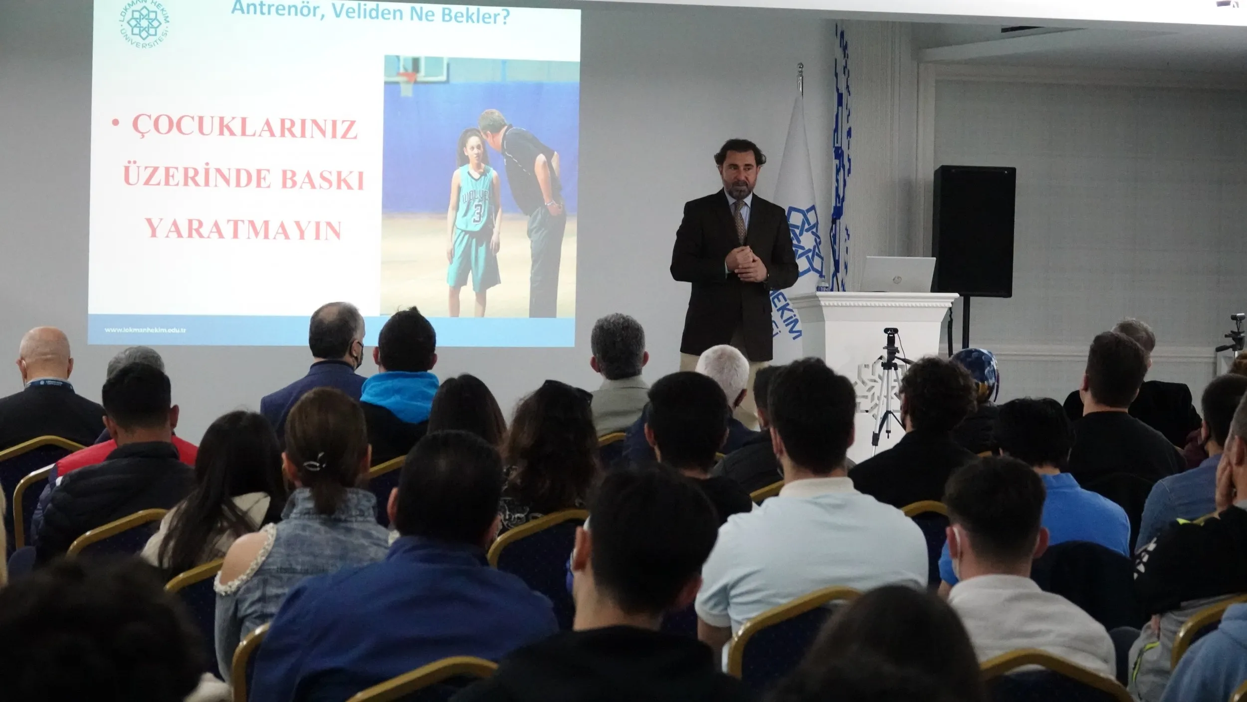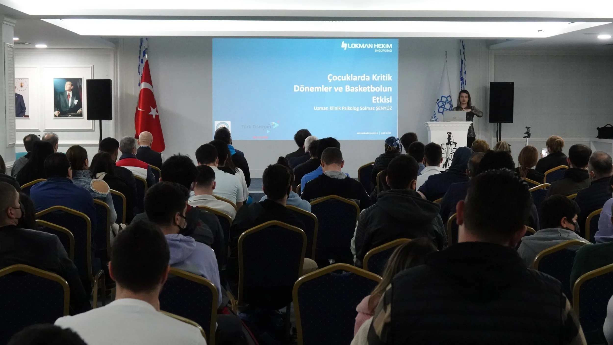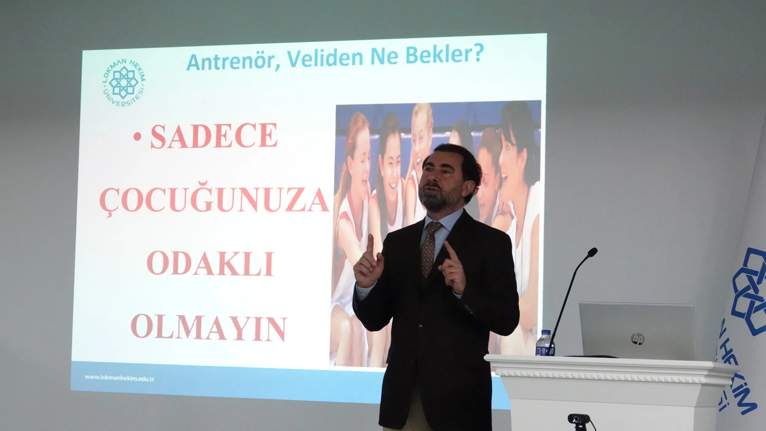 Lokman Hekim Üniversitesi Spor Kulübü etkinlikleri devam ediyor! Ankara’da basketbol eğitimi alan çocukların velilerine yönelik düzenlenen, Lokman Hekim Üniversite Hastanesi Uzm. Klinik Psikolog Solmaz ŞENYÜZ'ün katılımı ile ‘’Çocuklarda Kritik Dönemler ve Basketbolun Etkisi’’ ve Baş Antrenör Gencer BAYTİMUR'un katılımı ile ‘’Antrenör, Veliden Ne Bekler?” başlıklı konferanslar üniversitemiz A blok -1. kat konferans salonunda Doç. Dr. Mesut CERİT moderatörlüğünde gerçekleştirildi. Üniversitemiz Mütevelli Heyet Başkanı Dr. Mehmet ALTUĞ, Spor Bilimleri Fakültesi Dekanı Prof. Dr. Settar KOÇAK, Lokman Hekim Spor Kulübü Yönetim Kurulu Üyesi Mehmet ALDANMAZ, veliler ve öğrencilerimizin katıldığı konferansta basketbol üzerine doğrular ve yanlışların ele alınmasının ardından soru - cevap ile devam etti.