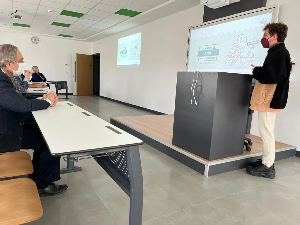 Eczacılık Fakültesi 2023-2024 Eğitim Öğretim Yılı Seminer Programı kapsamında Farmasötik Mikrobiyoloji Anabilim Dalı Arş. Gör. Emre DUMAN’ın “Çeşitli probiyotik bakterilerin postbiyotiklerinin enterik bakterilere karşı antimikrobiyal aktivitelerinin belirlenmesi” başlıklı semineri ile 04.12.23 tarihinde gerçekleşti. Seminer, Fakülte öğretim elemanlarımızdan gelen soruların cevaplandırılmasıyla sona erdi.