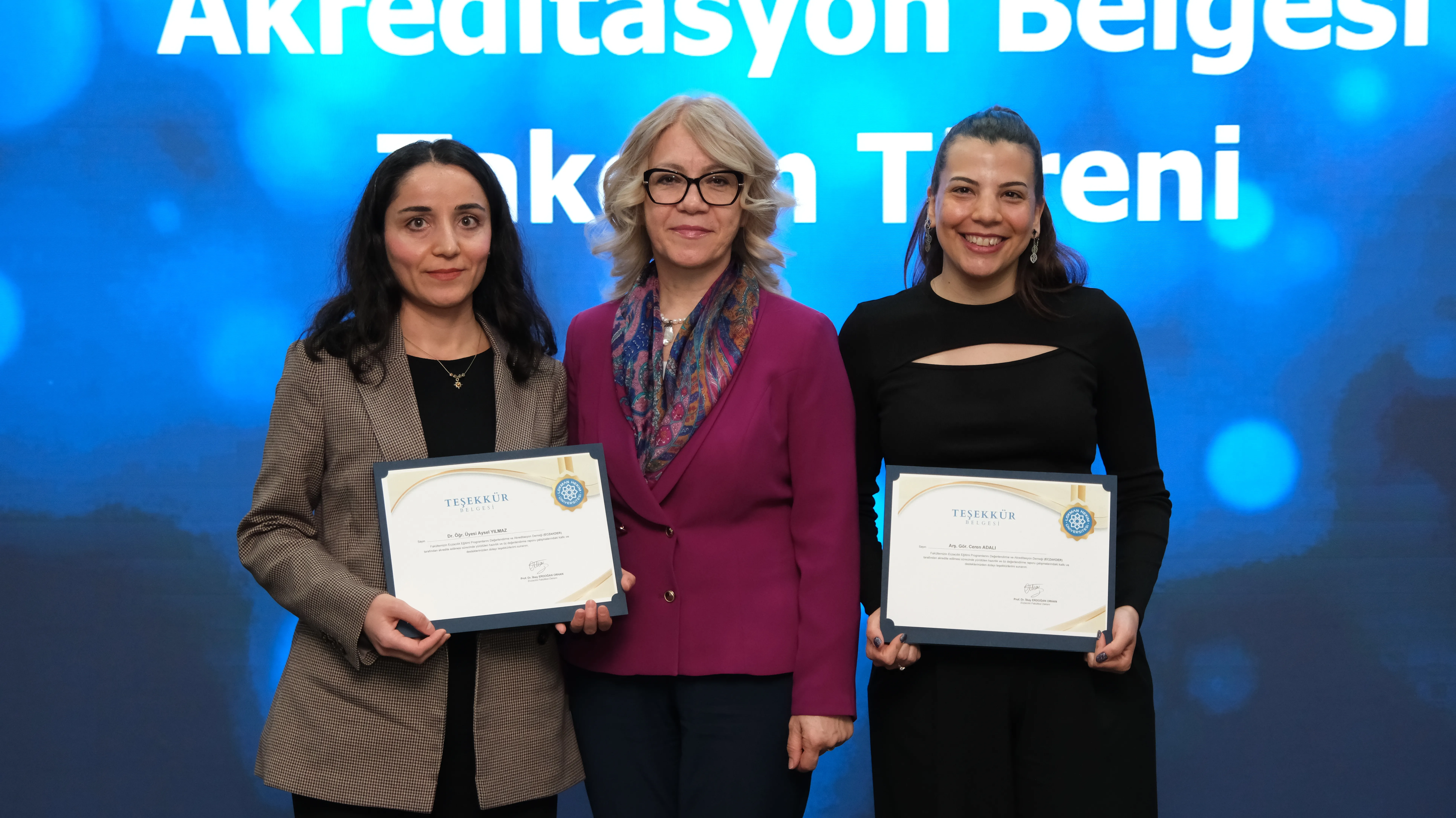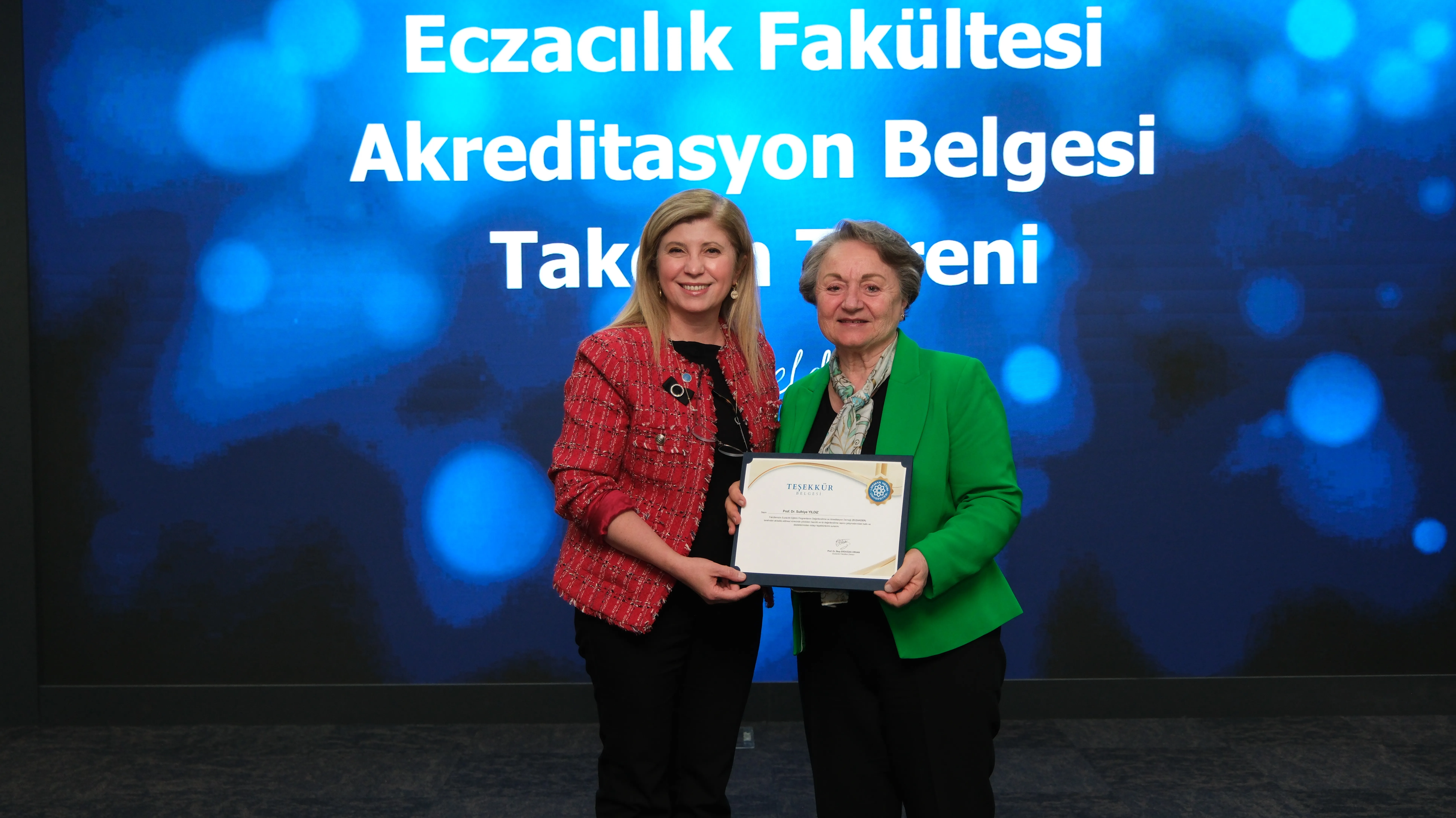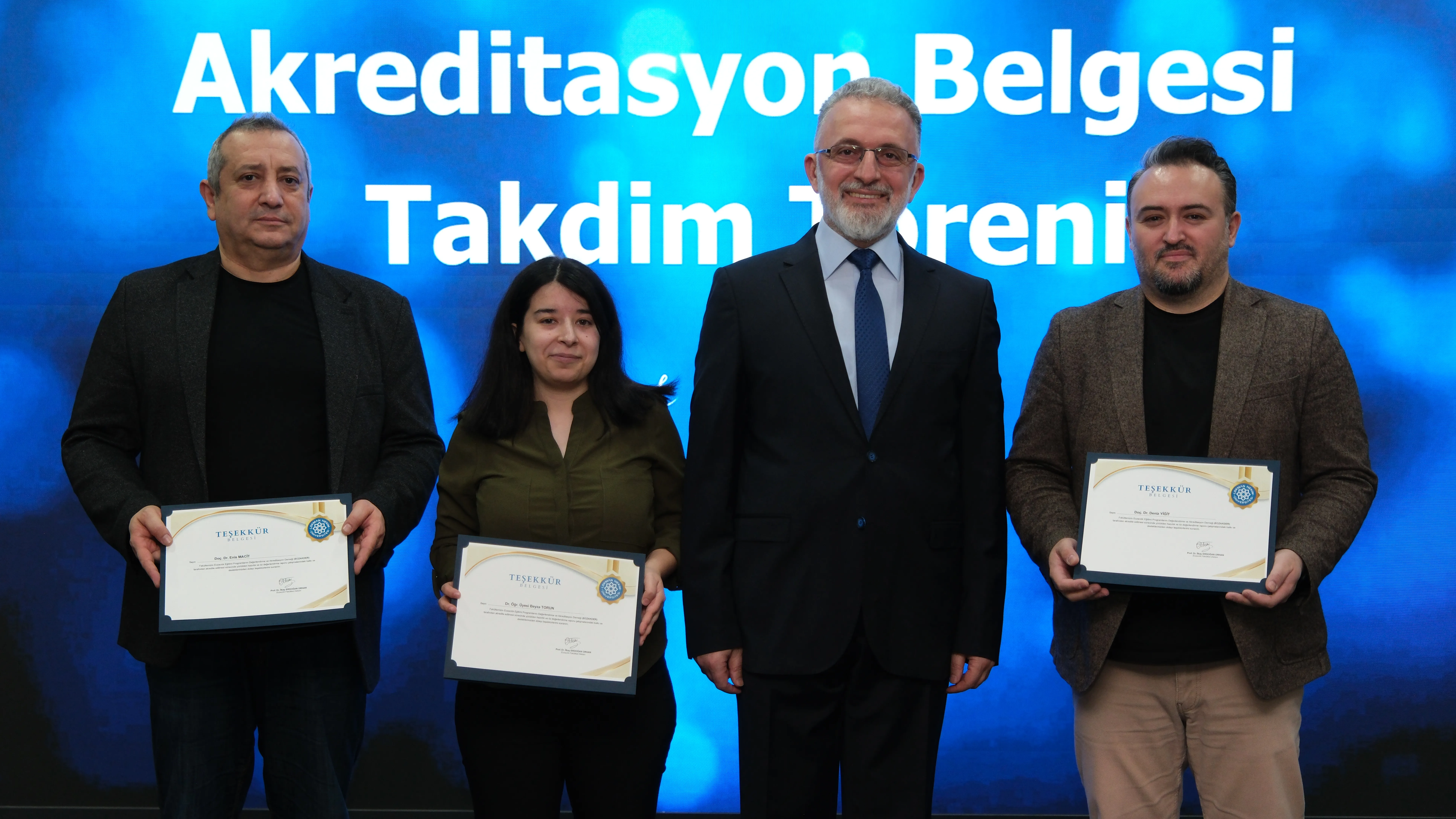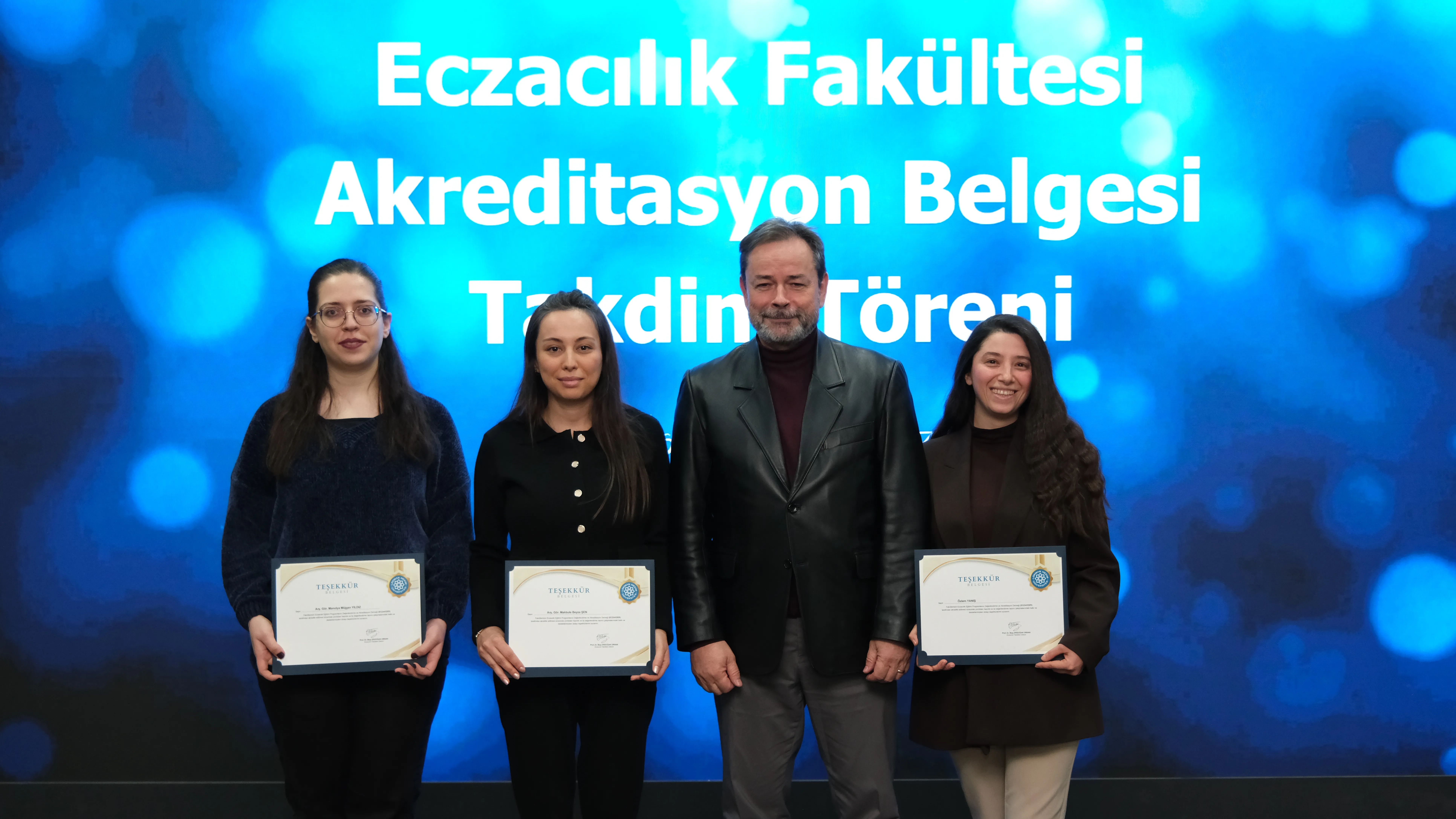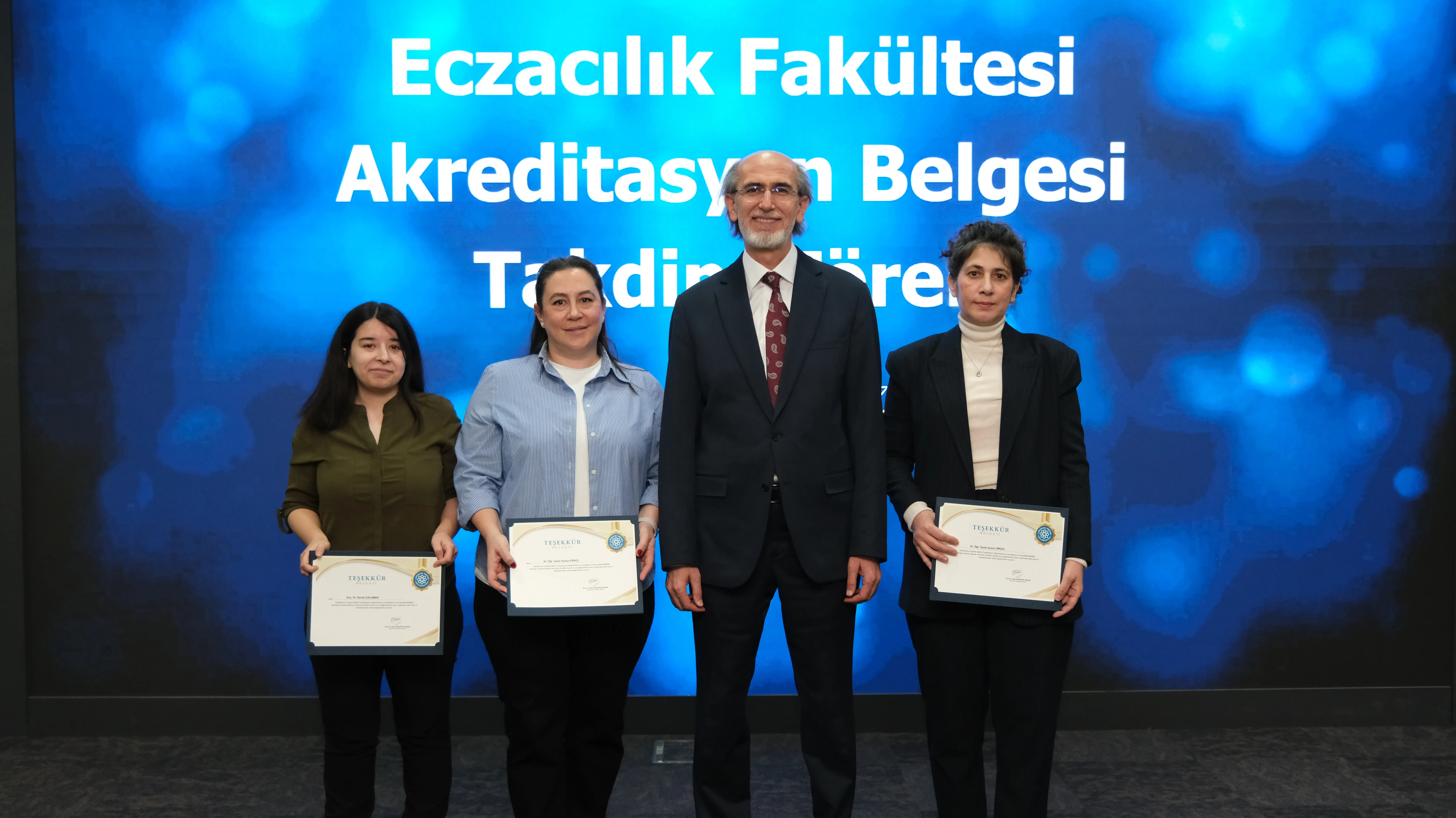 Törenin devamında, akreditasyon sürecinde aktif rol üstlenen Eczacılık Fakültesi Öz Değerlendirme Komisyonu (FÖDEK) üyelerine teşekkür belgeleri takdim edildi. Programın ilerleyen bölümünde ise ECZAKDER Başkanı Prof. Dr. M. Seçkin Özden tarafından Eczacılık Fakültesi Dekanı Prof. Dr. İlkay Erdoğan Orhan’a akreditasyon belgesi takdim edildi.