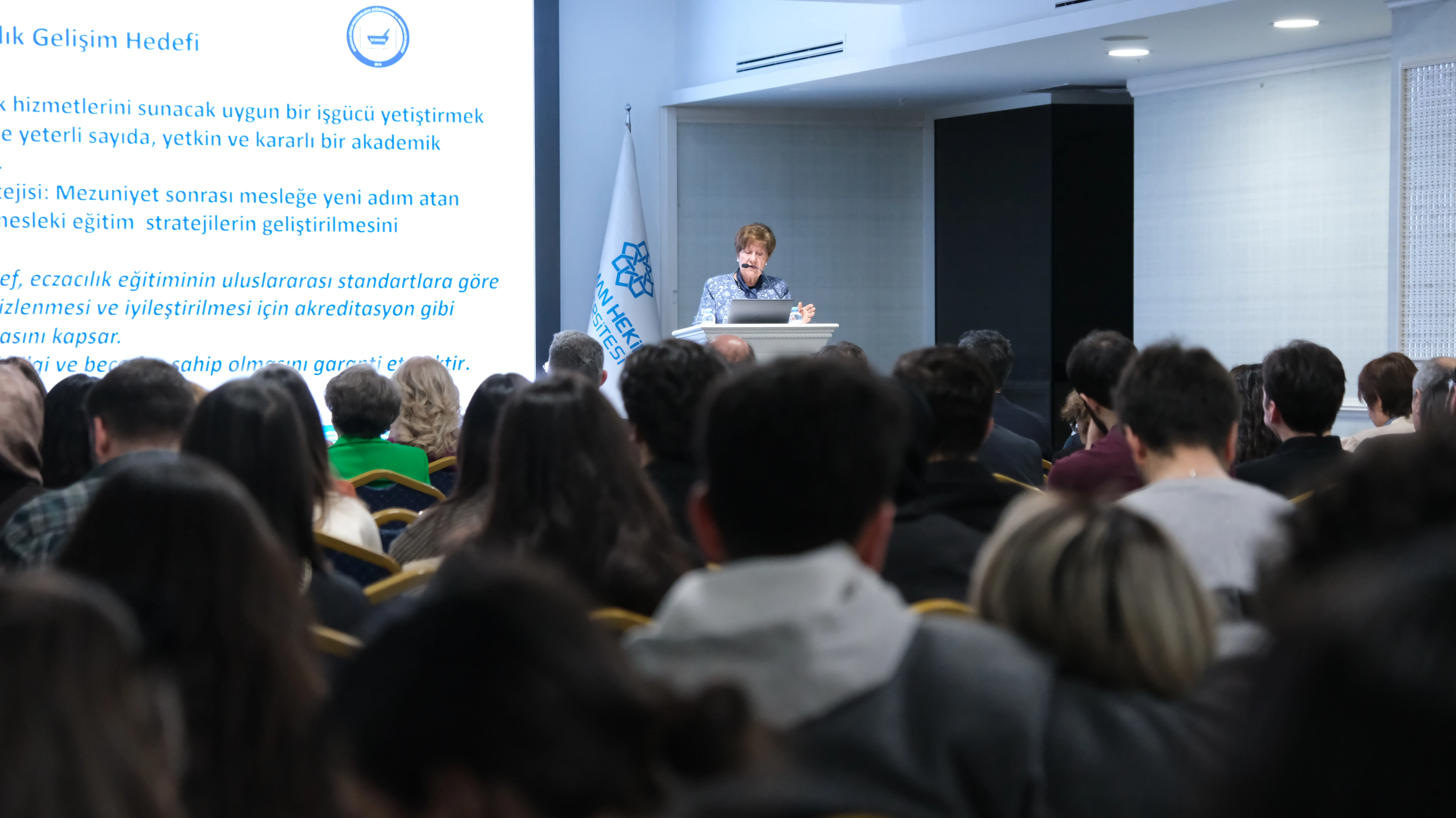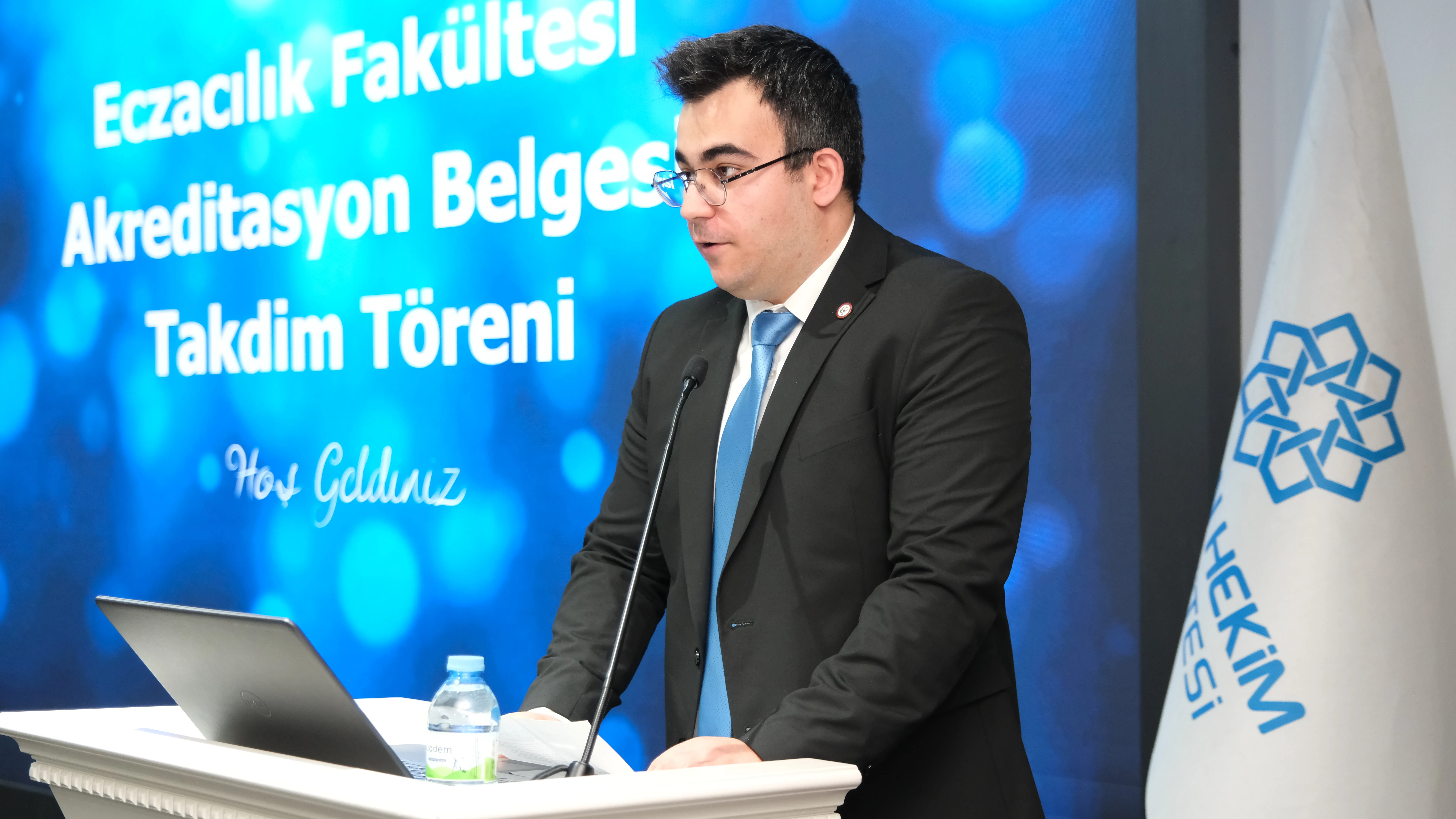 Programın devamında, Ulusal Eczacılık Eğitimi Akreditasyon Kurulu’nda (ECZAK) öğrenci temsilcisi olarak yer alan Fakültemiz Türkçe Eczacılık Programı 5. sınıf öğrencisi Mert Şaban Mercimek de bir konuşma gerçekleştirdi. Mercimek, konuşmasında akreditasyonun öğrenciler açısından önemine değindi.