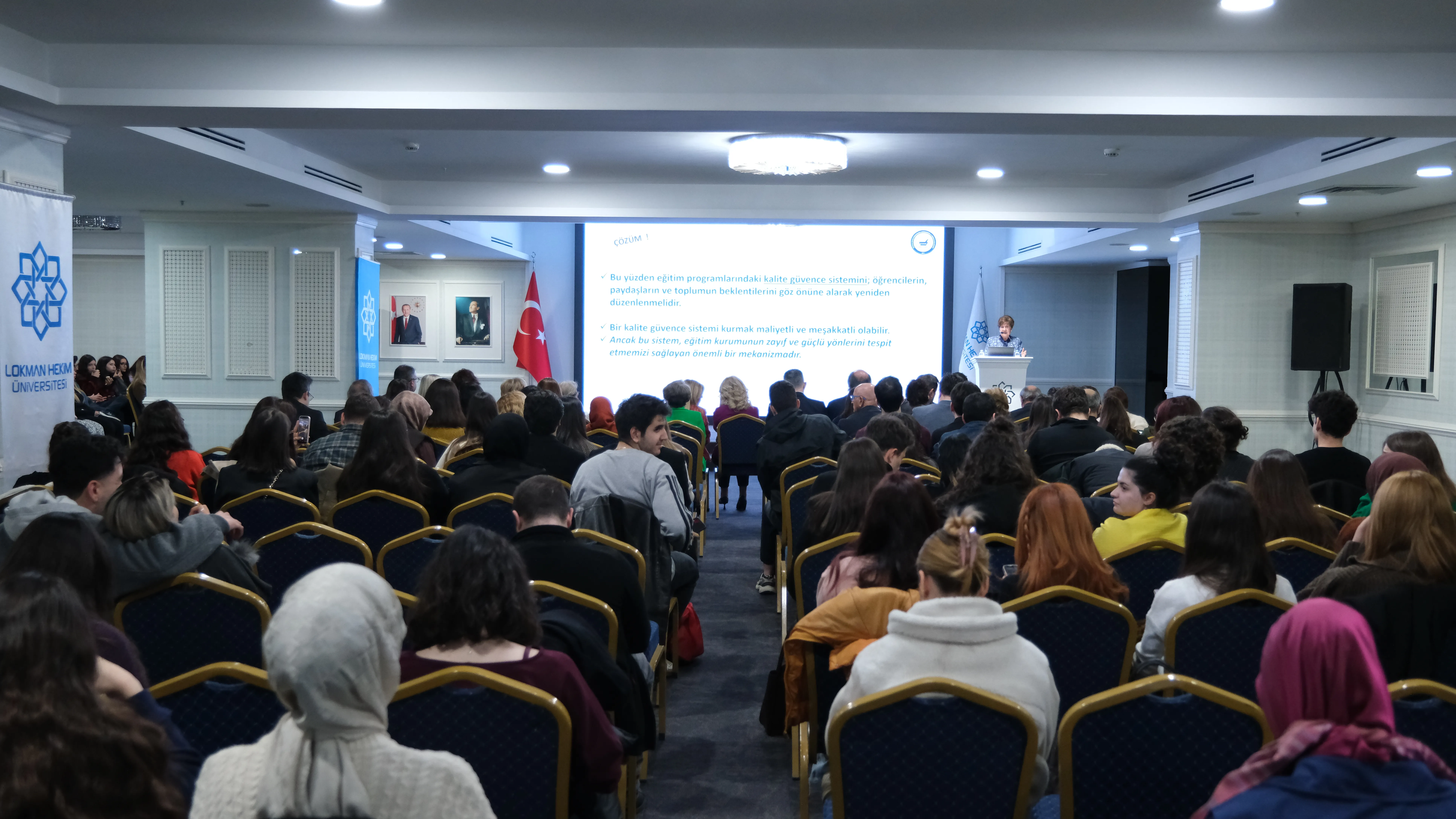 Program kapsamında ECZAKDER Başkanı Prof. Dr. M. Seçkin Özden, akreditasyon sürecine ilişkin bir sunum gerçekleştirdi. Özden, konuşmasında akreditasyonun yalnızca bir belge değil; eğitim kalitesini esas alan ve tüm paydaşların katkısıyla sürdürülen bir gelişim süreci olduğunu vurguladı.