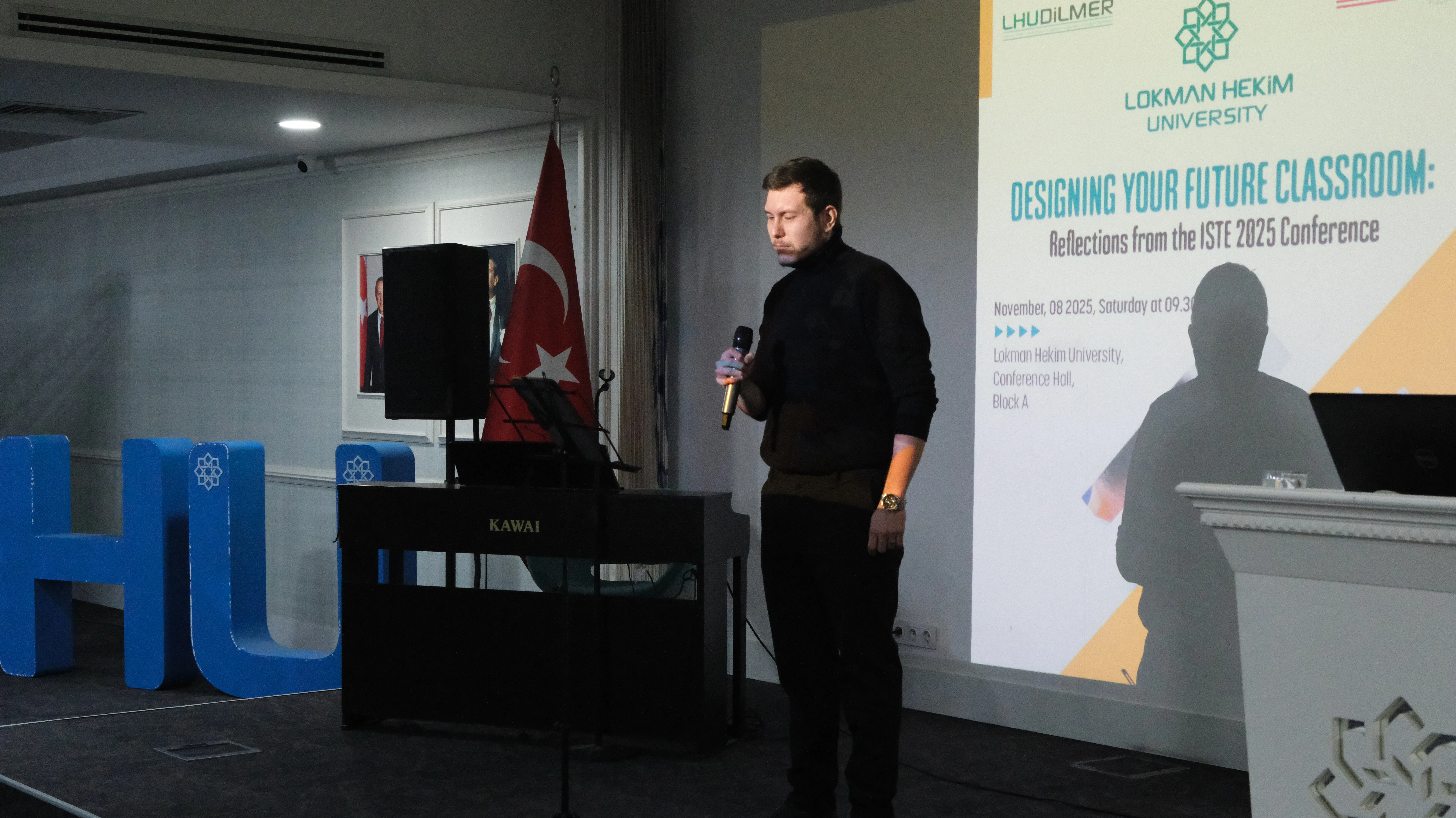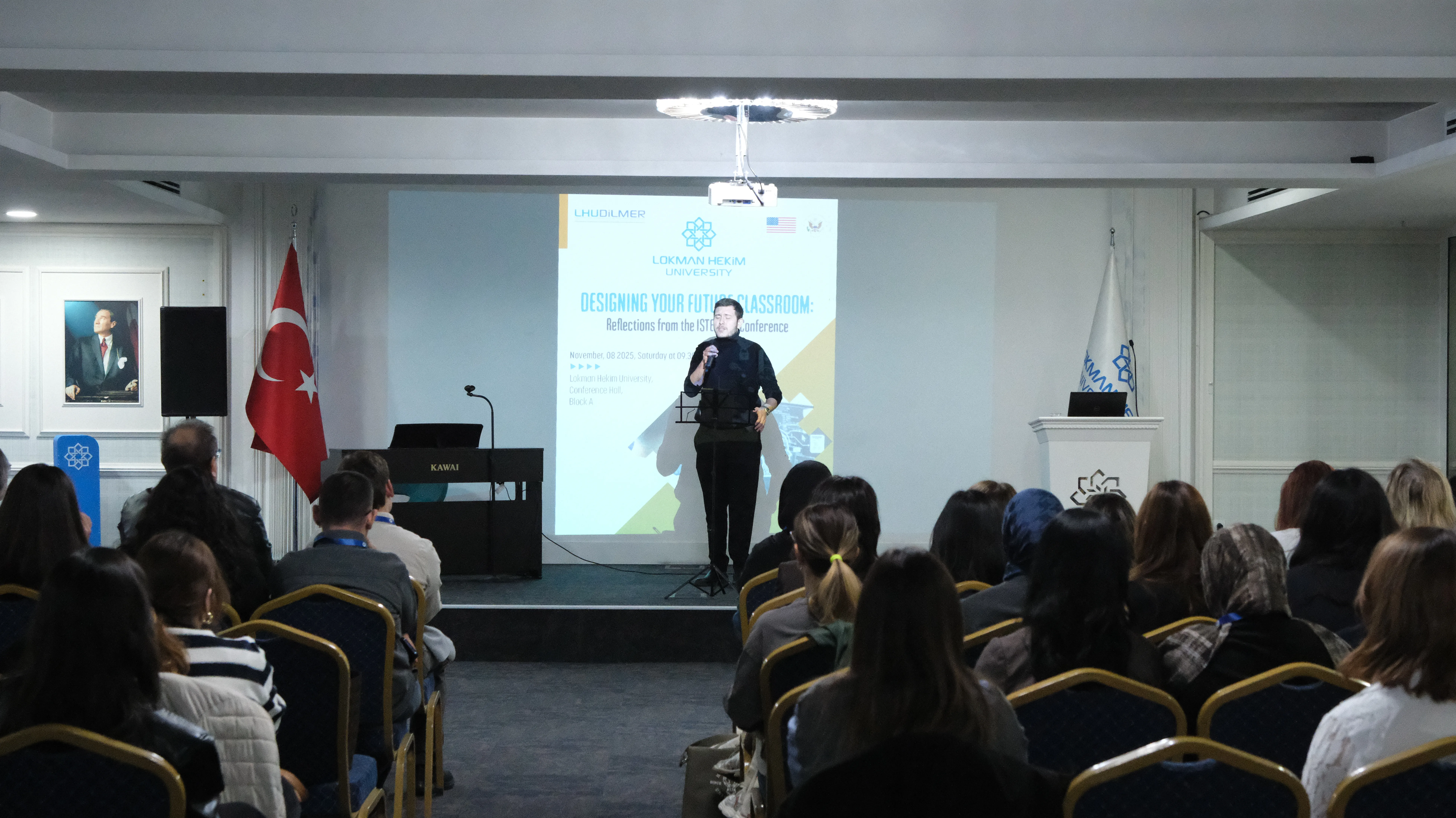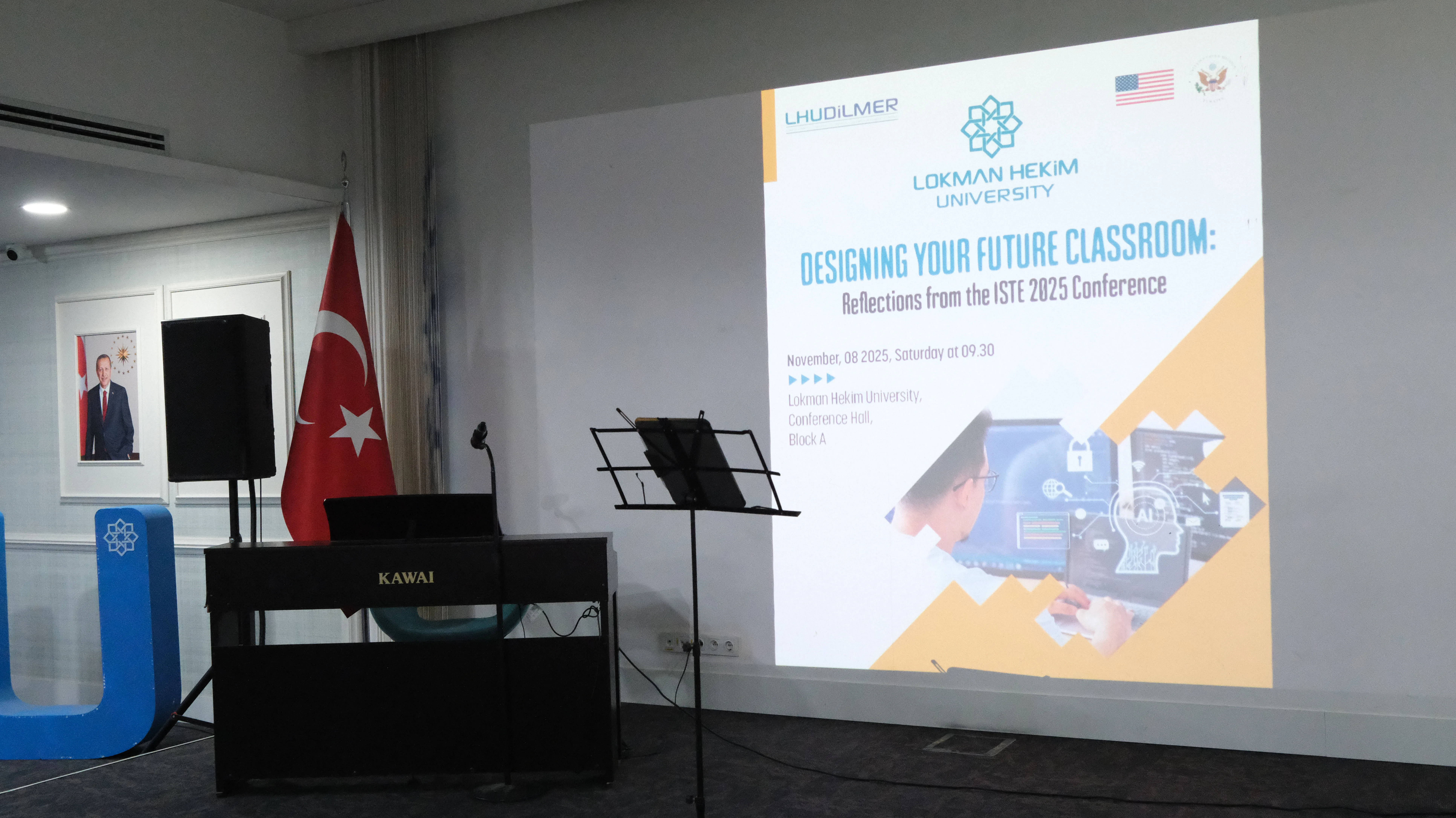 08 Kasım 2025 tarihinde “Designing Your Future Classroom: Reflections from the ISTE 2025 Conference” başlıklı konferans Lokman Hekim Üniversitesi Dil Öğretim Uygulama ve Araştırma Merkezi (DİLMER) tarafından DİLMER müdürü Dr. Öğr. Üyesi Gohar SEYEDİ direktörlüğünde ve ABD Büyükelçiliği Regional English Language Office (RELO)'nın sponsorluğunda düzenlendi.