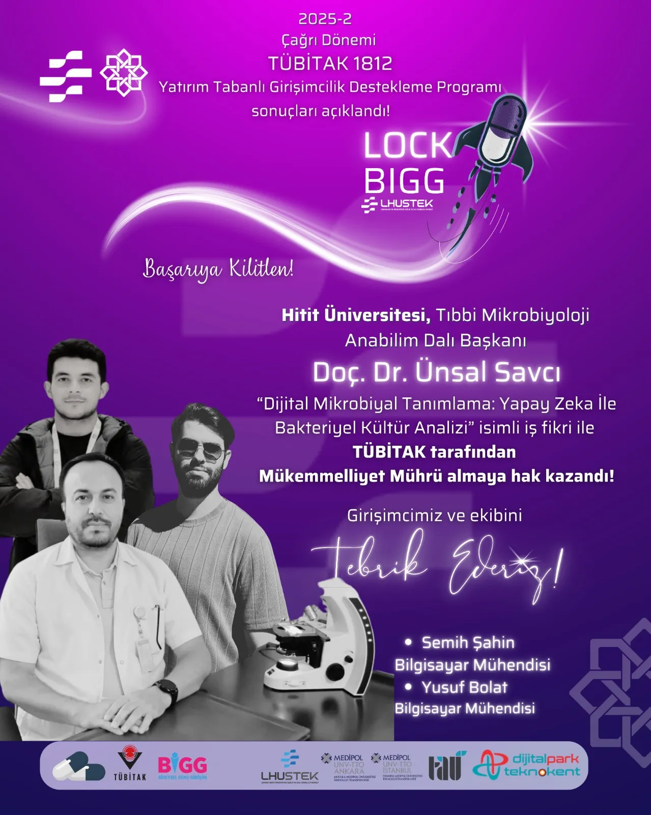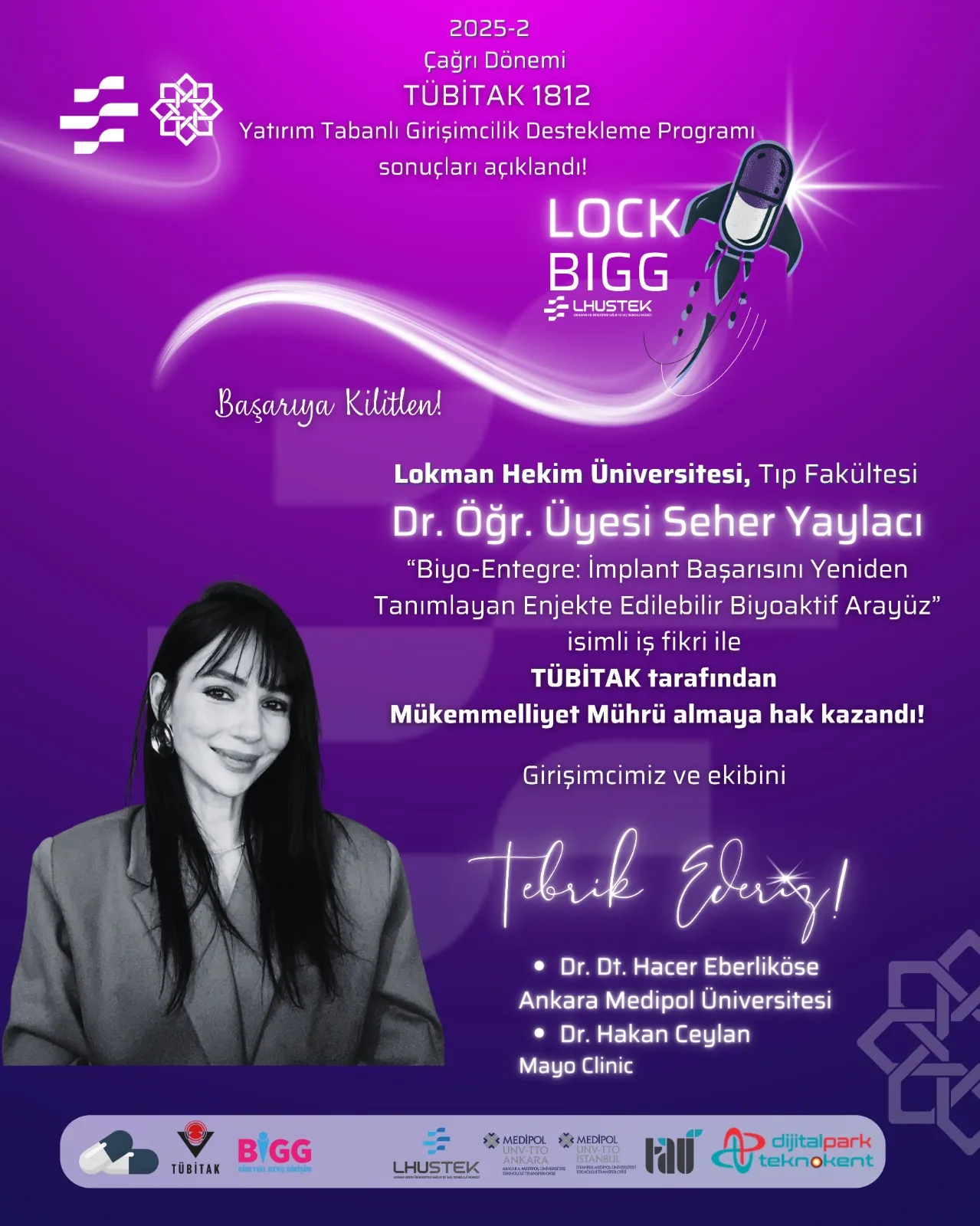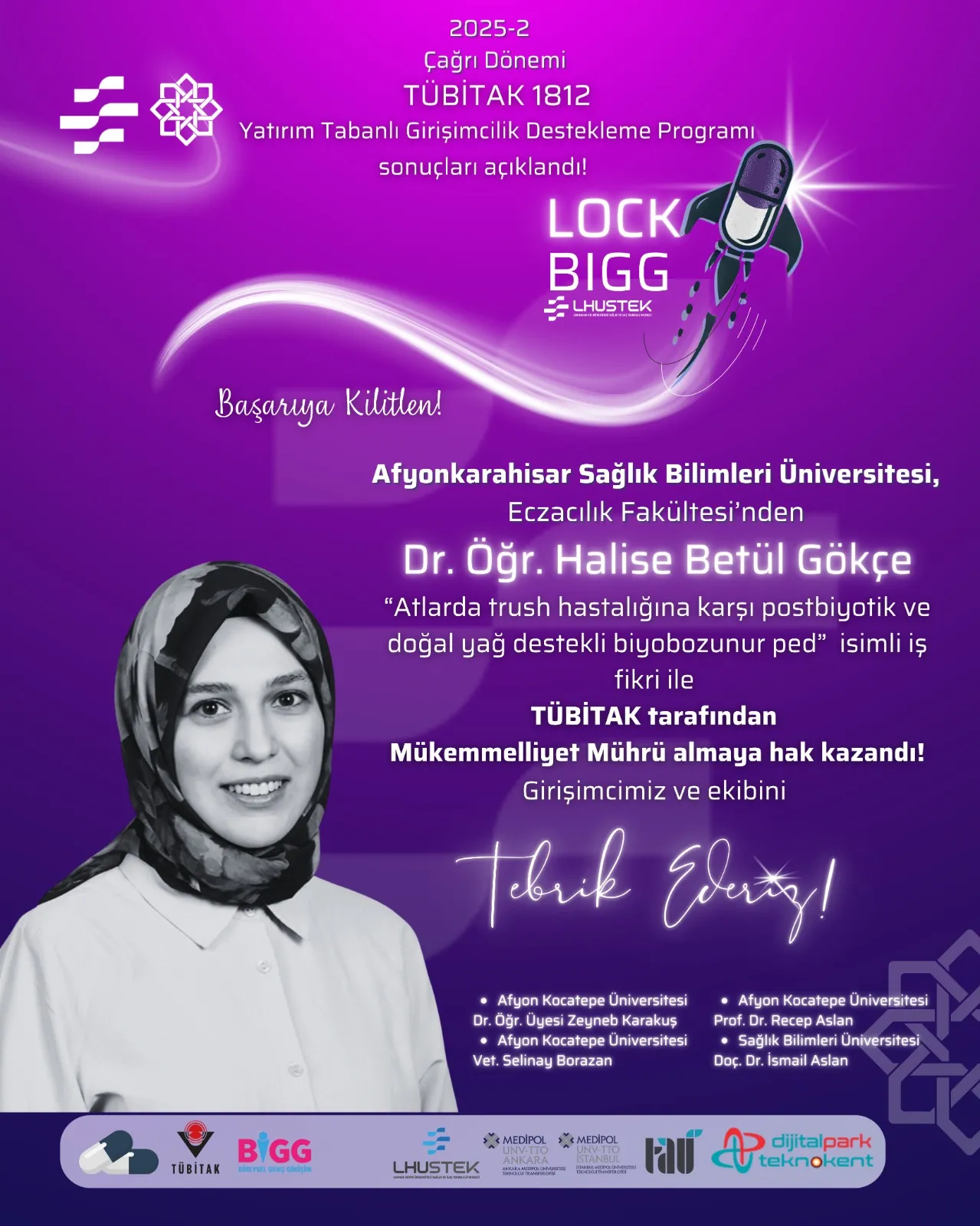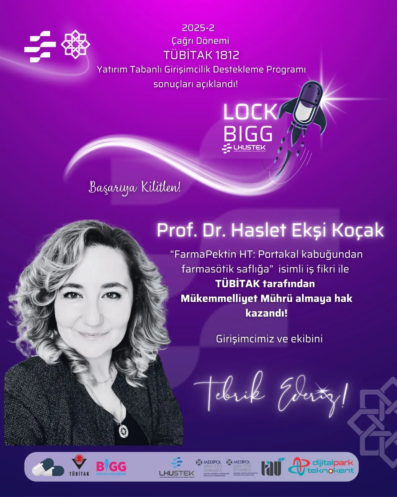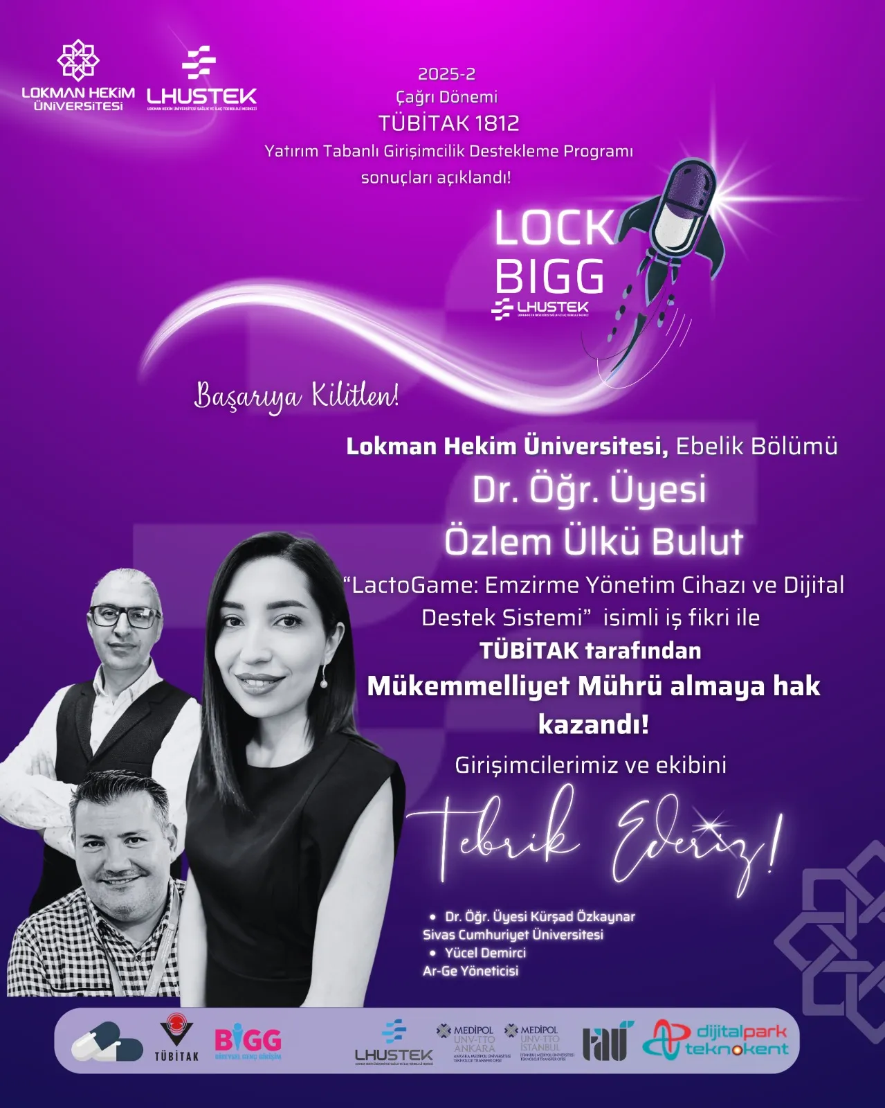 Lokman Hekim Üniversitesi Sağlık ve İlaç Teknolojileri Merkezi (LHUSTEK), TÜBİTAK 1812 BİGG – Yatırım Tabanlı Girişimcilik Destekleme Programı 2025-2 Çağrı Dönemi sonuçlarına göre önemli bir başarıya imza attı. Bu dönem TÜBİTAK’a iletilen 7 akademik tabanlı girişim fikrinden 6’sı desteklenmeye hak kazandı.