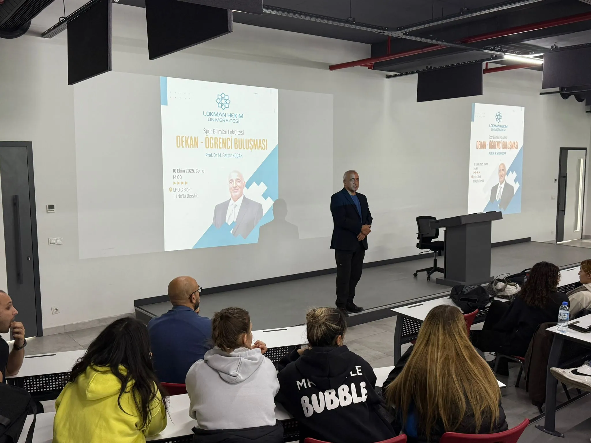 Spor Bilimleri Fakültesi, öğrencileriyle güçlü bir iletişim ve etkileşim kurmak amacıyla “Dekan – Öğrenci Buluşması” etkinliği düzenledi. 10 Ekim 2025 Cuma günü saat 14:00’da C Blok C 111 nolu sınıfta gerçekleştirilen etkinlikte, öğrenciler fakülte dekanı ile bir araya geldi.