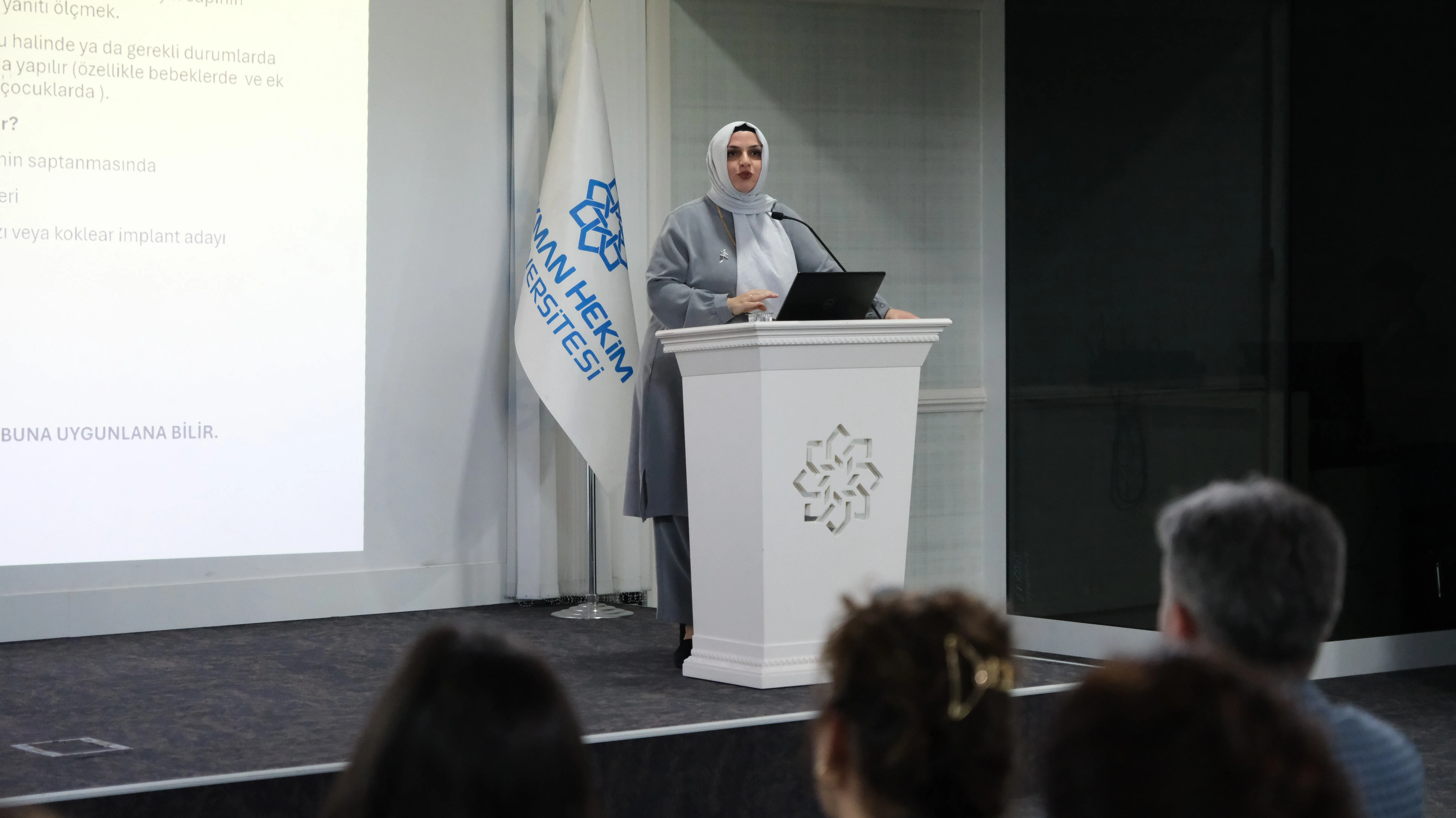 Açılış konuşmalarının ardından, İşitme ve Denge Merkezinin tanıtımı Dr. Öğr. Üyesi Tuğçe Gül ÇAĞLAR tarafından yapıldı. Çağlar, merkezin işitme ve denge bozukluklarının erken tanı ve rehabilitasyon süreçlerinde önemli bir rol üstleneceğini, modern cihaz altyapısı ve uzman kadrosuyla multidisipliner bir hizmet anlayışı sunacağını belirtti.