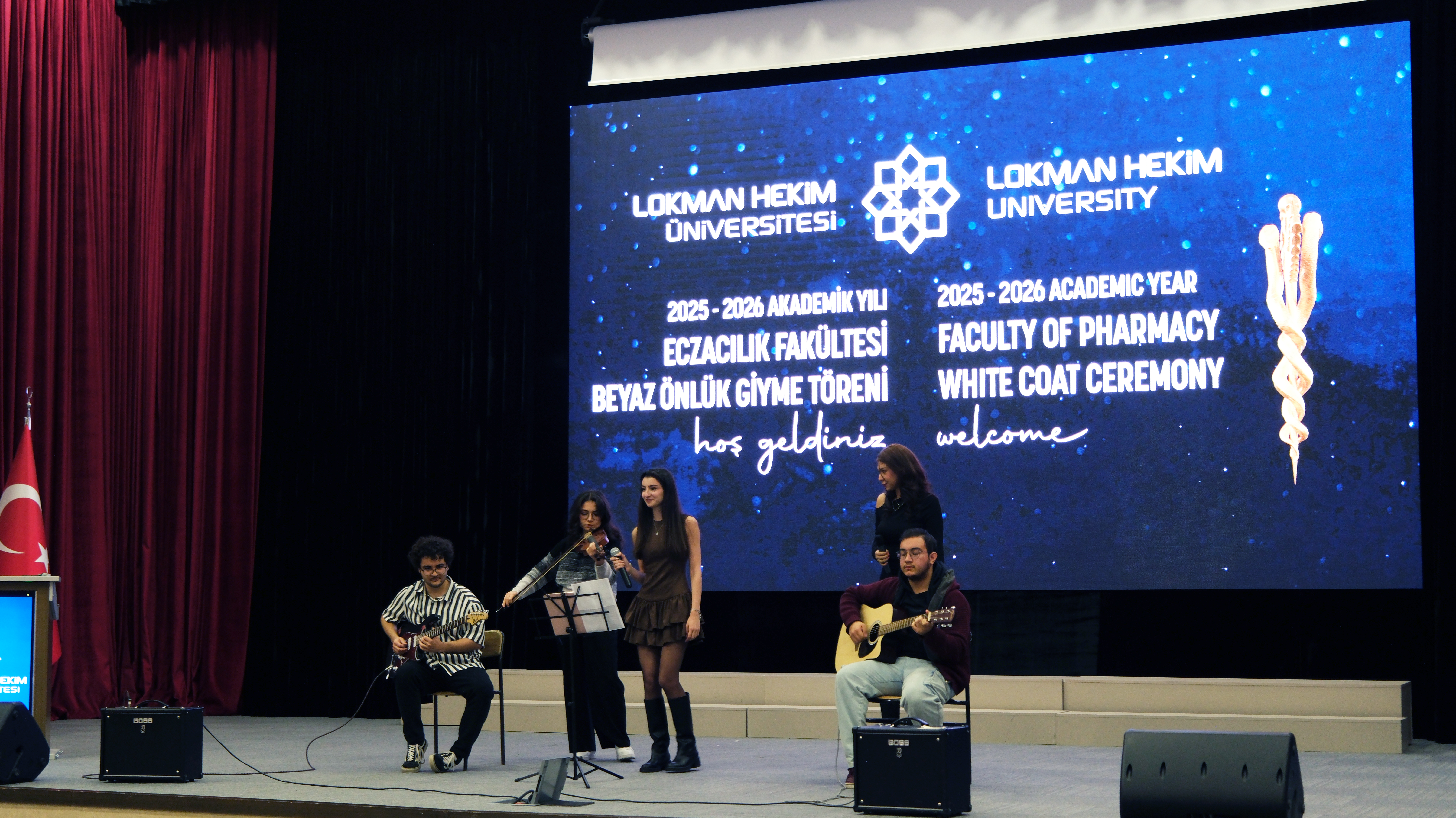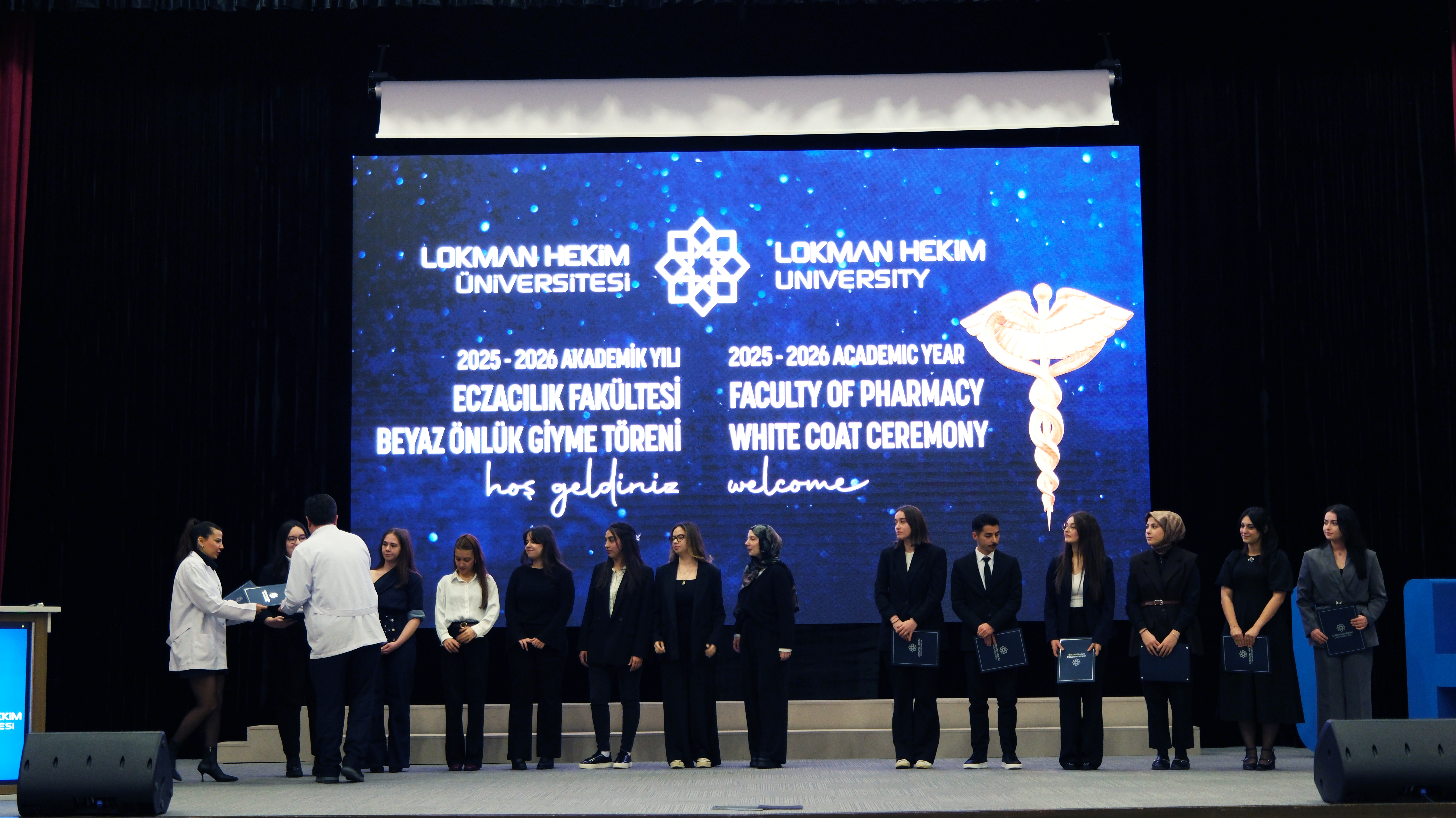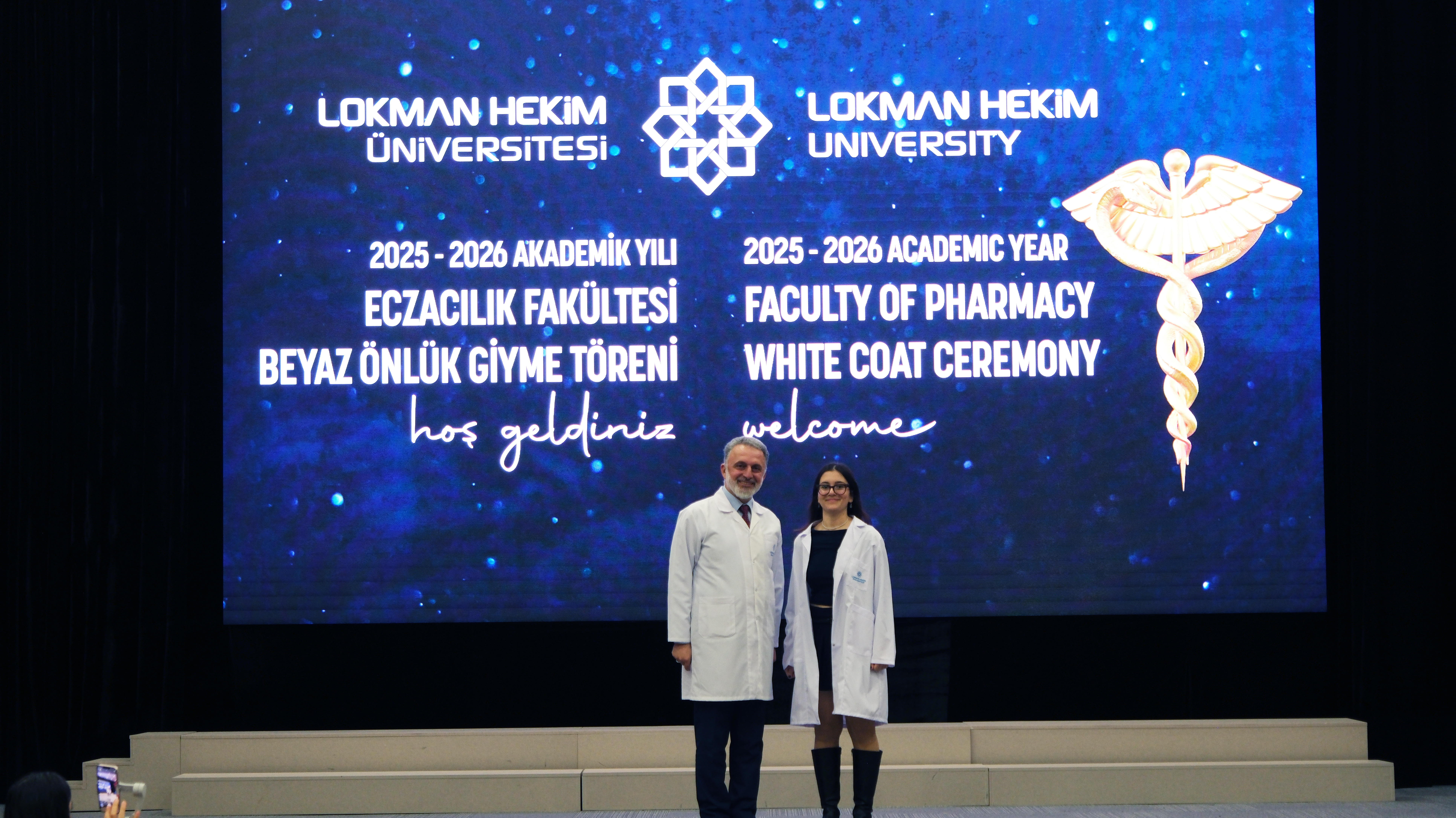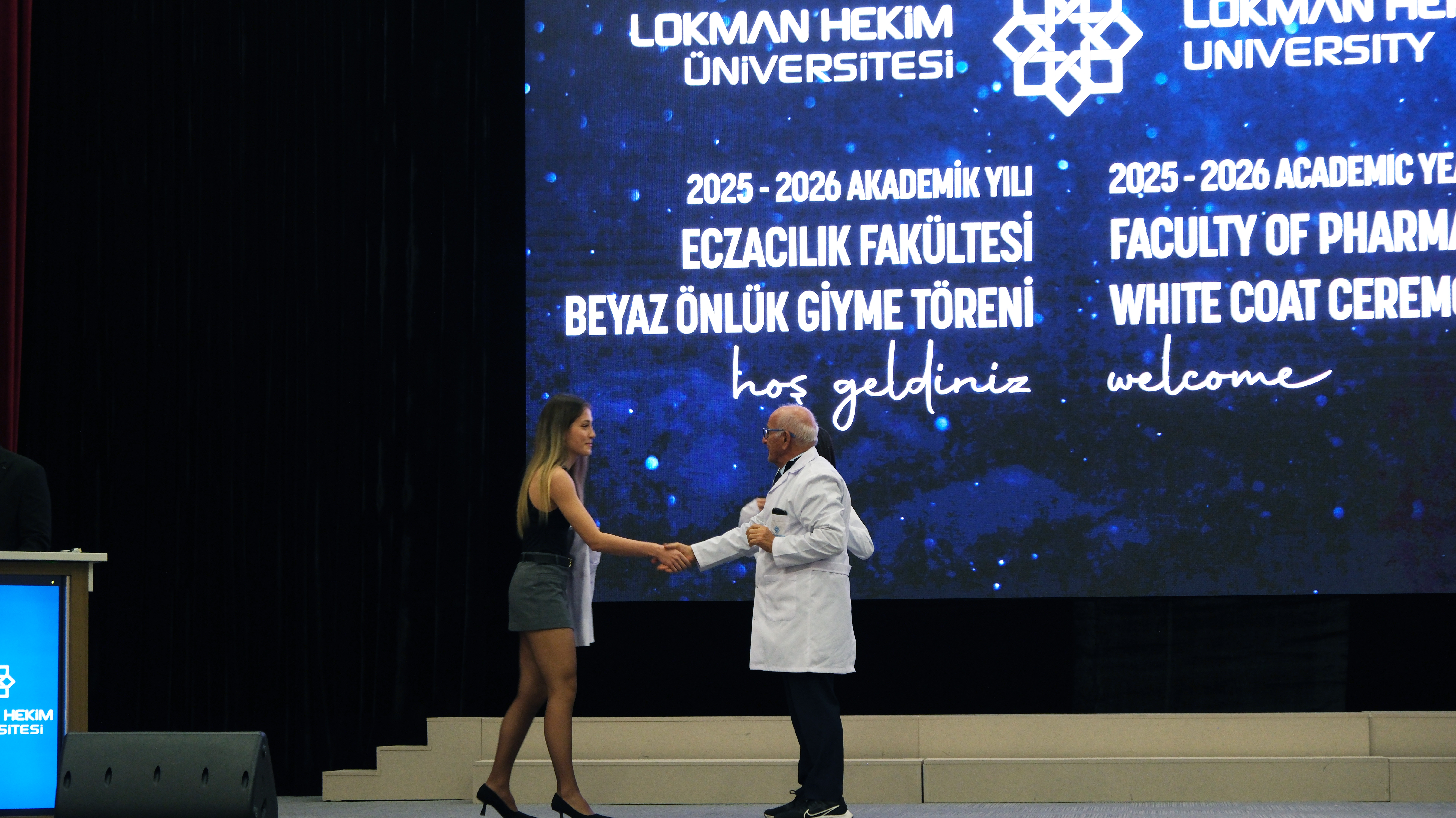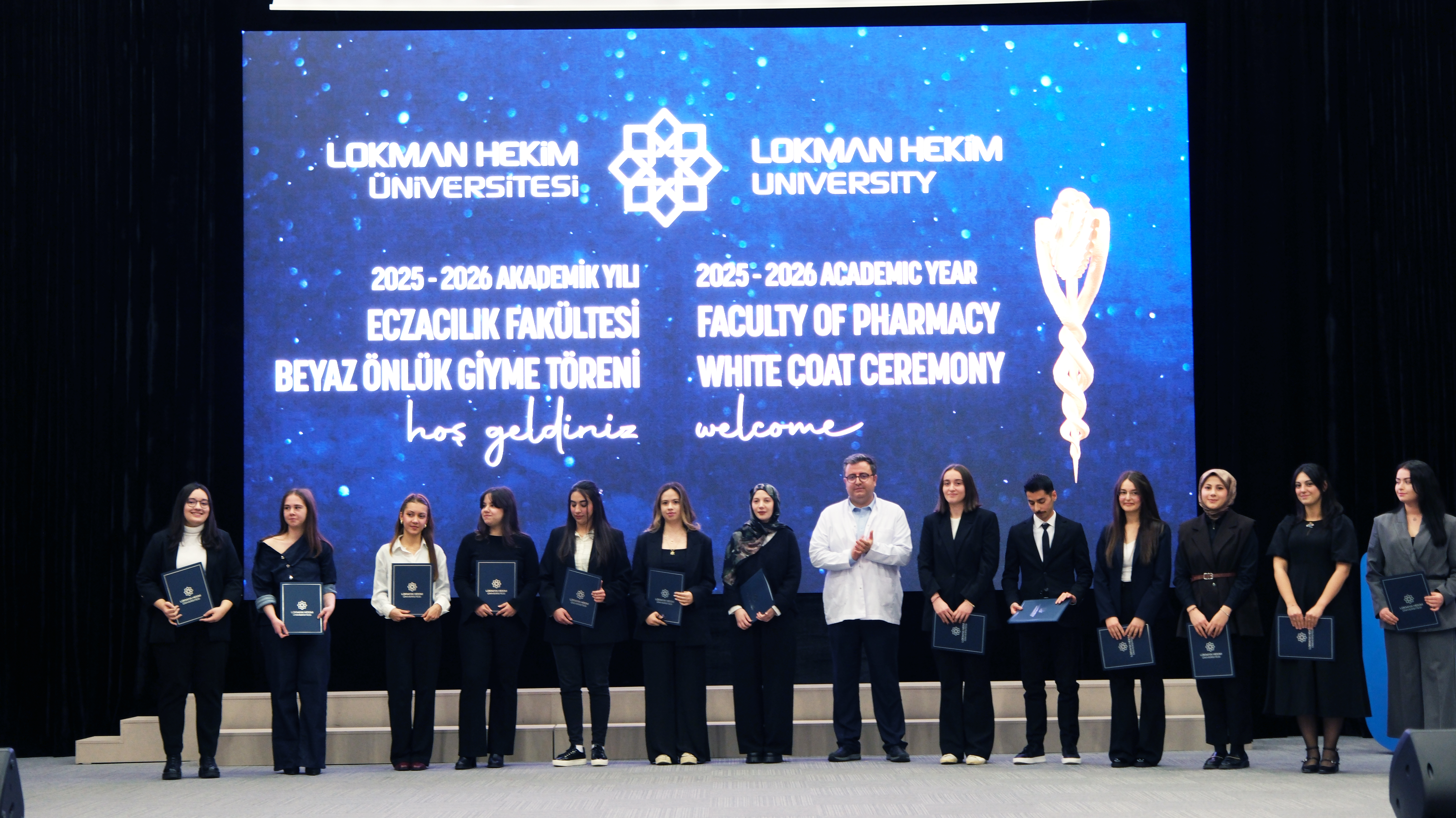 Lokman Hekim Üniversitesi Eczacılık Fakültesi öğrencilerinin mesleki eğitimlerinde önemli bir aşamayı temsil eden Beyaz Önlük Giyme Töreni, 4 Aralık 2025 Perşembe günü MTA Sadrettin Alpan Konferans Salonu’nda gerçekleştirildi. Akademisyenler, öğrenciler ve ailelerin katılımıyla düzenlenen tören, eczacılık alanında profesyonel kimliğe geçişin sembolik ve anlamlı bir başlangıcı olarak kayda geçti.