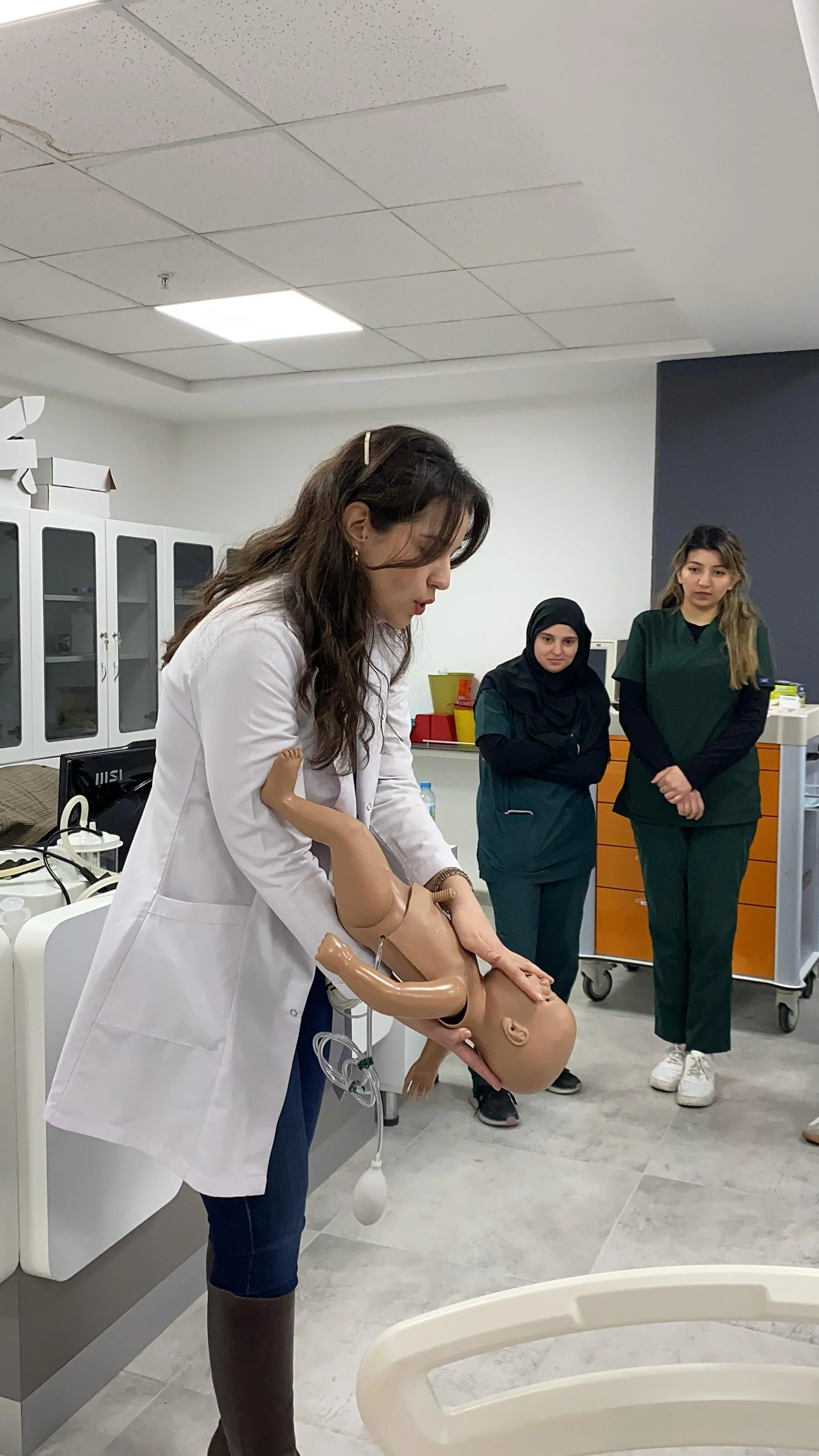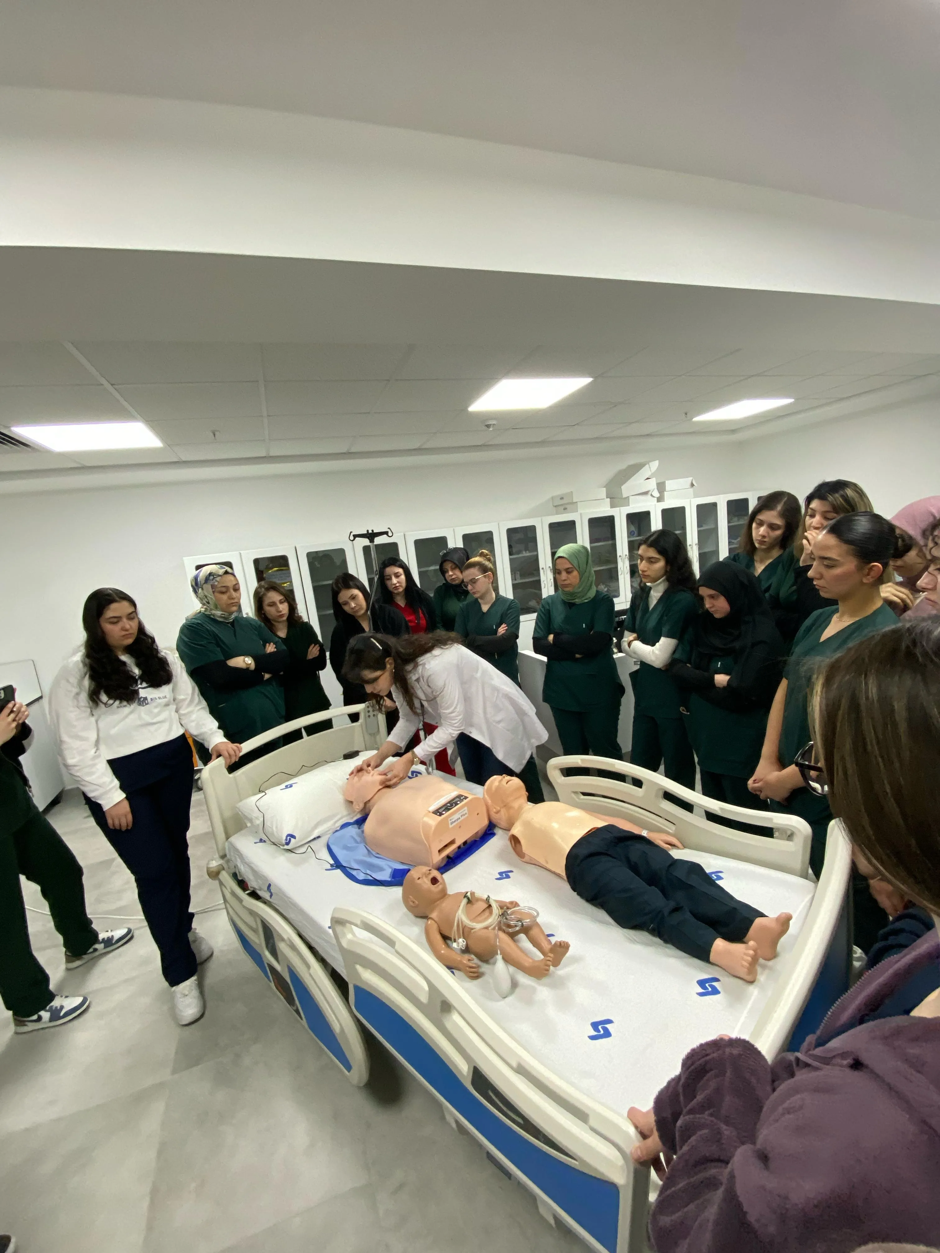 Gerçek vaka senaryolarına dayalı simülasyonlarla zenginleştirilen eğitimde; temel yaşam desteği, hava yolu açıklığının sağlanması, kardiyopulmoner resüsitasyon (CPR) ve acil müdahale becerileri uygulamalı olarak aktarıldı. Ebelik 4. sınıf öğrencileri için özel olarak tasarlanan bu oturum, mezuniyet sonrası klinik hayata daha hazırlıklı bireyler yetiştirmeyi hedefliyor.