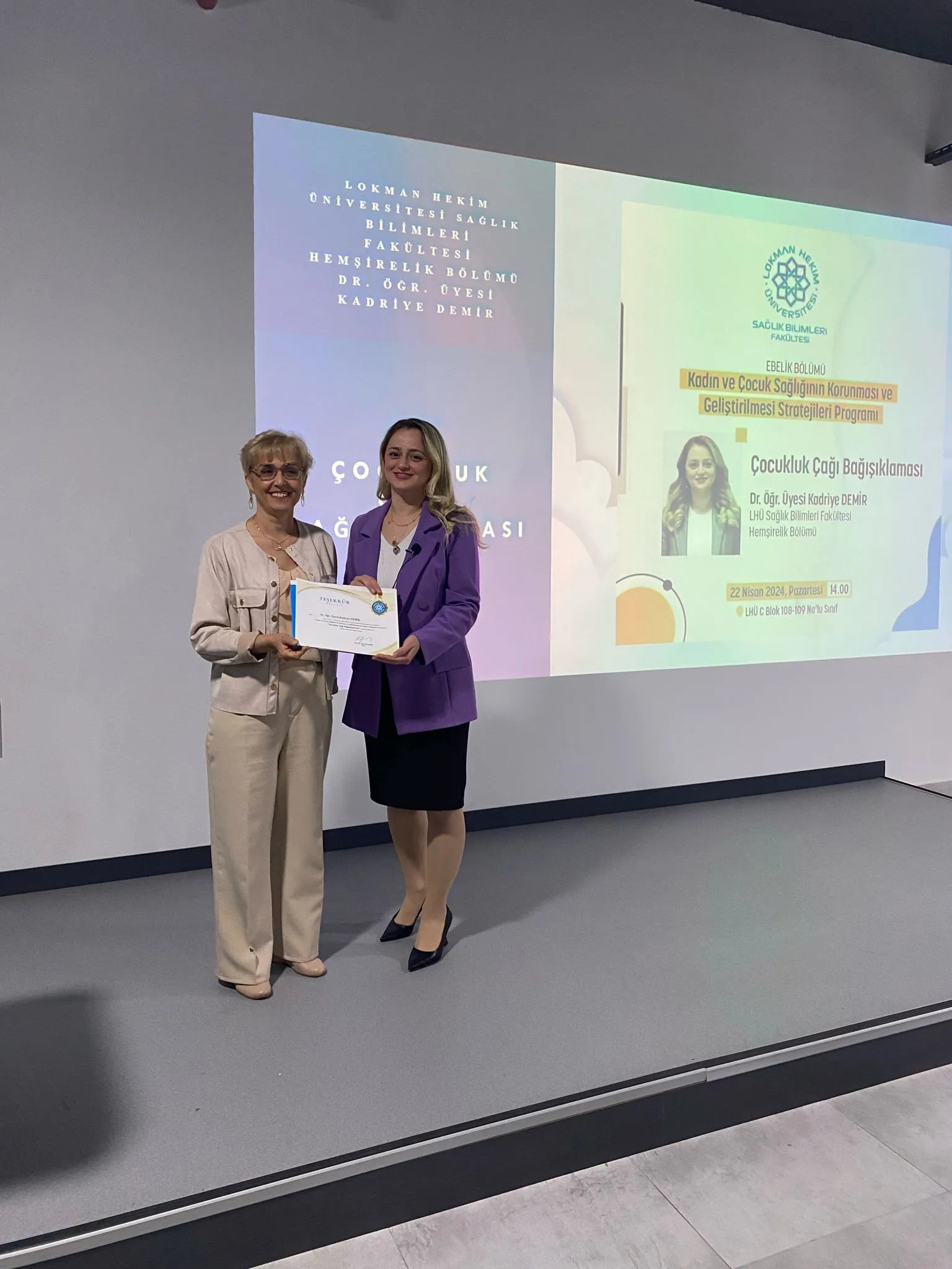 Ebelik Bölümü olarak düzenlediğimiz “Kadın ve Çocuk Sağlığının Korunması ve Geliştirilmesi Stratejileri Programı” kapsamında üniversitemiz Sağlık Bilimleri Fakültesi Ebelik ve Hemşirelik Bölümü öğrencilerine yönelik dördüncüsü gerçekleşen "Çocukluk Çağı Bağışıklaması" konulu semineri düzenlendi. Hemşirelik Bölümü öğretim üyelerinden Dr. Öğr. Üyesi Kadriye DEMİR tarafından 22 Nisan 2024 saat 14:00'de C Blok 111 Nolu amfide gerçekleştirildi.