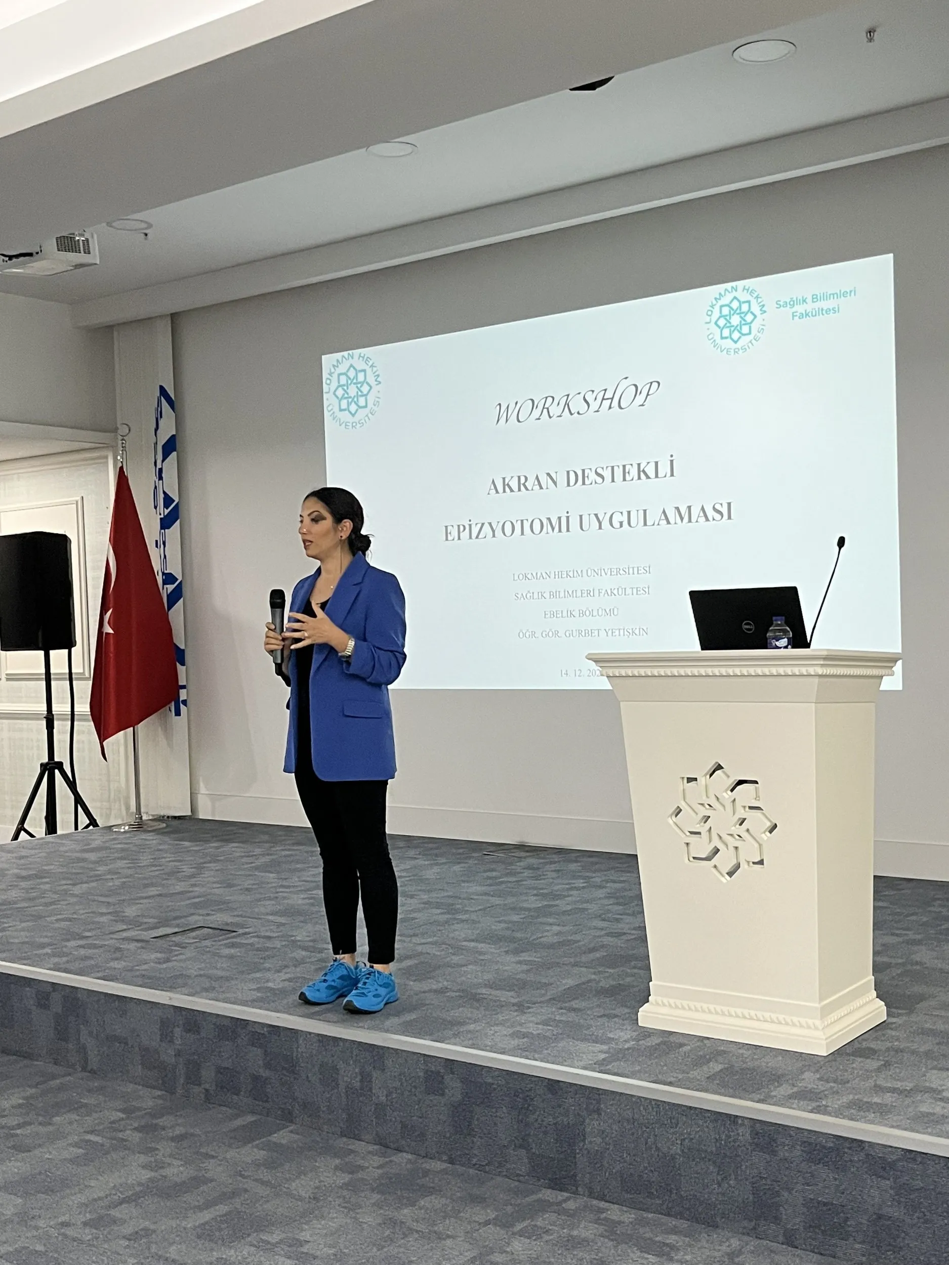 Workshop, Sağlık Bilimleri Fakültesi Ebelik Bölümü Öğretim Üyesi Doç. Dr. Didem ŞİMŞEK KÜÇÜKKELEPÇE’nin açılış konuşmaları ile başlayıp Öğr. Gör. Gurbet YETİŞKİN’in “Epizyotomi ve İyileşme Süreci: Güncel Yaklaşımlar” konulu sunumu ile devam etti.