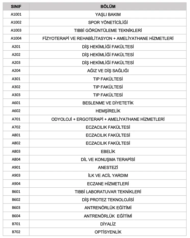 - Tıbbi Hizmetler ve Teknikler Bölümü