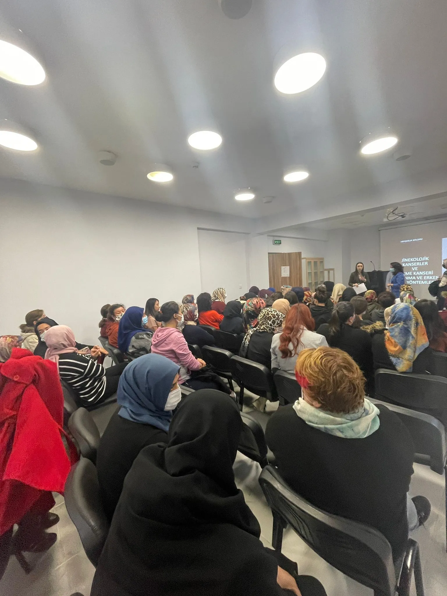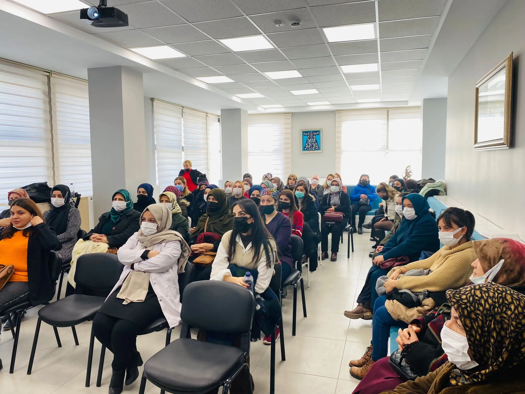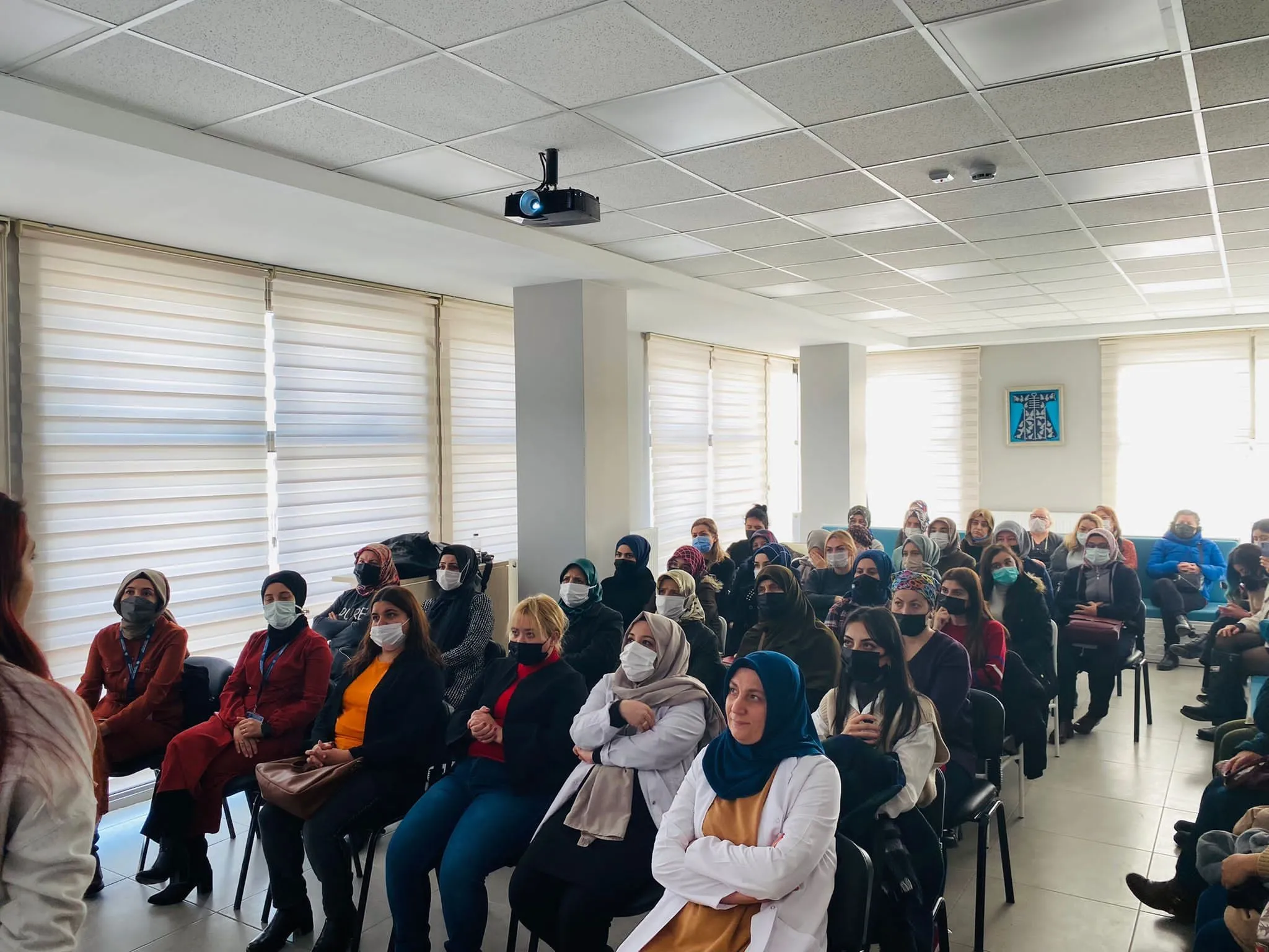 Üniversitemiz ve Mamak Belediyesi arasındaki işbirliği protokolü kapsamında 21-23 Aralık 2021 tarihleri arasında Mamak Belediyesi’ne bağlı Aile Merkezleri’nde Prof. Dr. Zehra GÖLBAŞI ve Dr. Öğr. Üyesi Didem ŞİMŞEK KÜÇÜKKELEPÇE koordinatörlüğünde Ebelik Bölümü öğretim elemanları, Hemşirelik Bölümü Doğum ve Kadın Hastalıkları Hemşireliği Ana Bilim Dalı öğretim elemanları, ebelik bölümü son sınıf öğrencileri ve Hemşirelik Bölümü üçüncü sınıf öğrencileri tarafından Kadın Sağlığı Farkındalık Eğitimleri gerçekleştirilmiştir. Üç gün boyunca süren etkinliklere toplam 270 kadın katılmıştır. Toplam 6 merkezde (Kayaş Aile Merkezi, Yeşilbayır Aile Merkezi, Yunus Emre Bilim Sanat Merkezi, Zirvekent Aile Merkezi, Abidinpaşa Aile Merkezi ve Akdere Bilim ve Sanat Merkezi) 20 eğitim oturumu geçekleştirilmiştir. Eğitimlerde Jinekolojik Kanserlerden Korunma ve Erken Tanı, Meme Kanseri ve Korunma, Menopozal Dönemde Sağlık, Gebelikte Sağlıklı Yaşam, Anne Sütü ve Emzirme, Mentrual Dönem ve Hijyen Uygulamaları, Aile Planlaması gibi konulara yer verilmiştir.