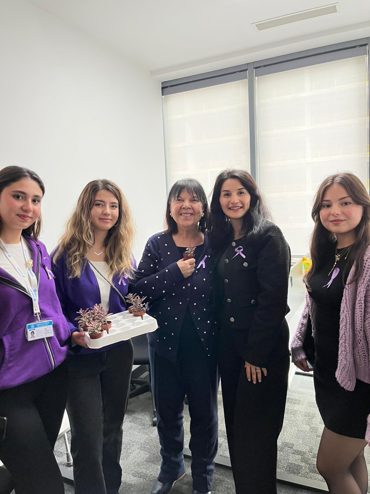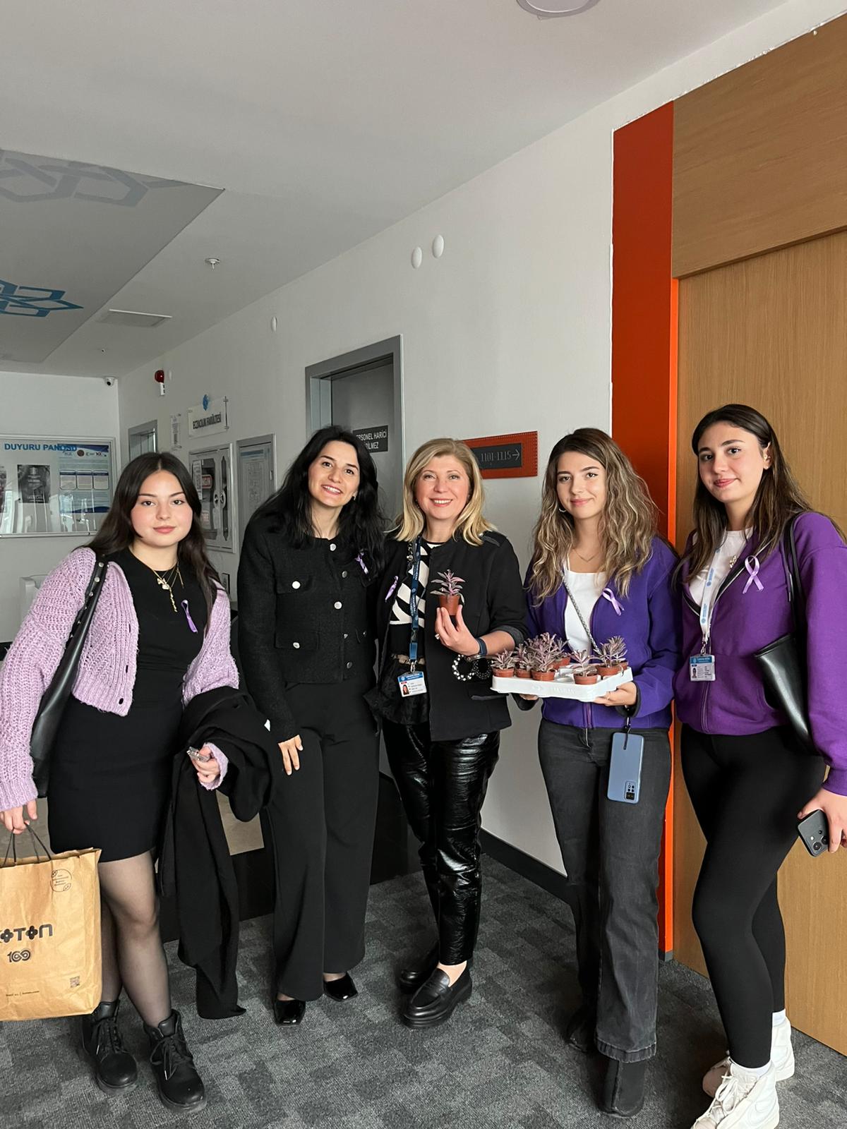 Etkinlik kapsamında menopoz döneminde olan akademisyen hocalarımıza mor çiçekler takdim edildi. Farkındalık ve dayanışmayı simgelemek amacıyla katılımcıların yakalarına mor kurdeleler takıldı. “Menopozun Farkındayım” mesajını güçlendirmek amacıyla stand alanında parmak boyasıyla el baskısı etkinliği gerçekleştirildi.