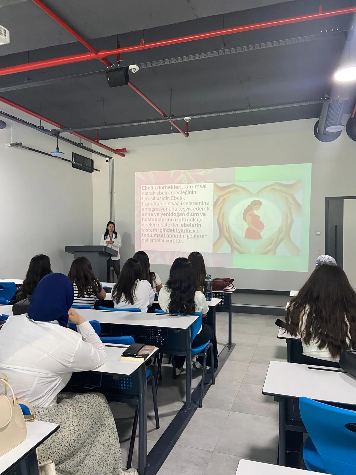 Üniversitemiz Uyum Programı kapsamında Ebelik Bölümü öğrencilerimize yönelik tanıtım ve bilgilendirme oturumu gerçekleştirildi. Programda, bölümün eğitim-öğretim süreçleri, bilimsel faaliyetleri, ders planları ve akademik danışmanlık sistemi hakkında bilgiler paylaşıldı. Öğrenciler ayrıca mesleki dernekler ve öğrenci toplulukları konusunda bilgilendirildi.