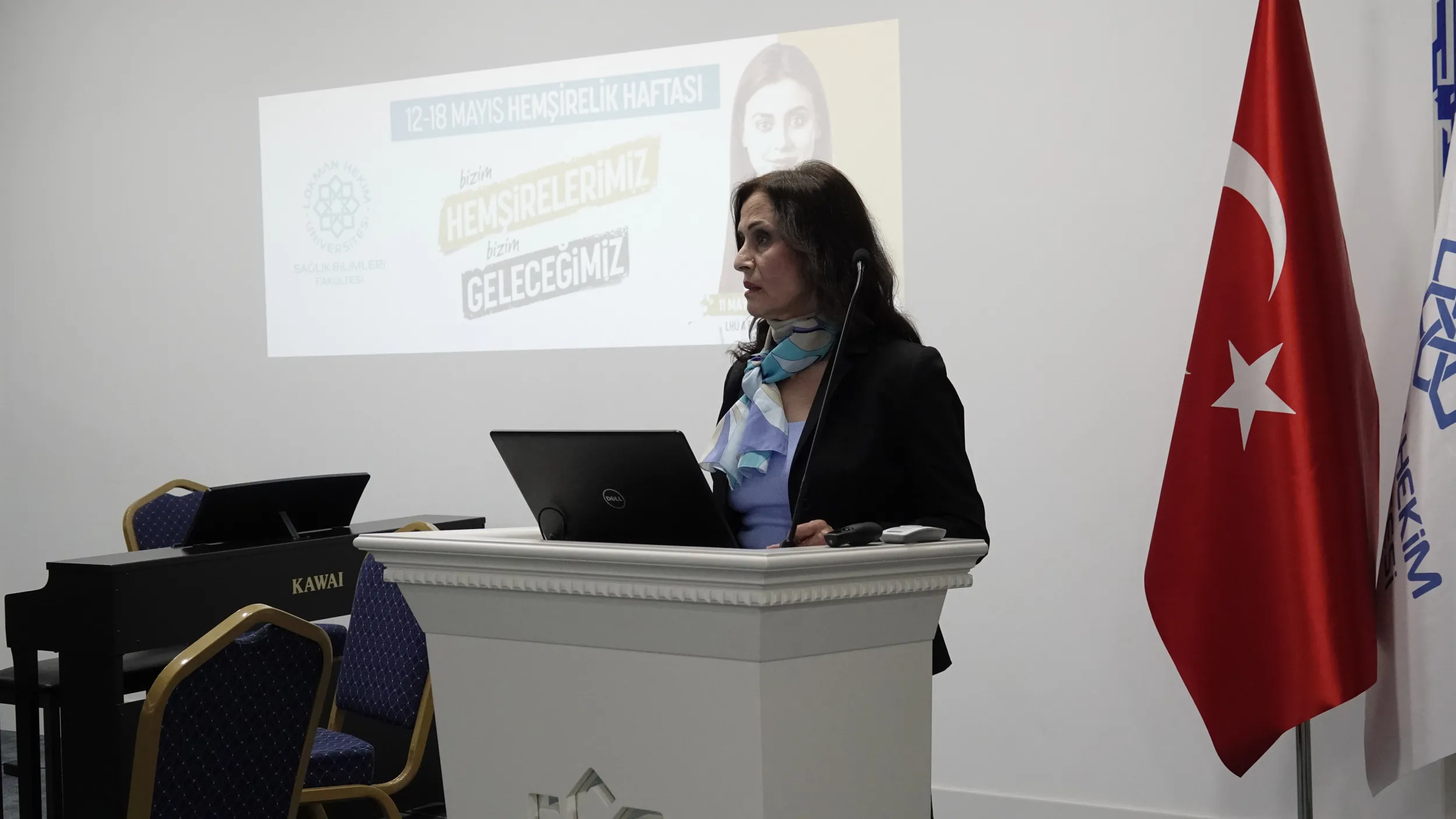 Lokman Hekim Üniversitesi Sağlık Bilimleri Fakültesi Hemşirelik bölümü Etkinlikleri Devam Ediyor. 12 – 18 Mayıs Hemşireler Haftası kapsamında düzenlenen ”Bizim Hemşirelerimiz Bizim Geleceğimiz” başlıklı etkinlik 11 Mayıs 2023 Perşembe günü üniversitemiz A blok konferans salonunda gerçekleştirildi. Alanında uzman birçok konuşmacının yer aldığı etkinlik Hemşirelik Bölüm Başkanı Prof. Dr. Belgin AKIN'ın açılış konuşması ile başladı. Rezonans Quintet Grubunun müzik dinletisi ile devam eden etkinlikte alanında uzman birçok konuşmacının katılımıyla Hemşirelikte Savunuculuk, Yurtdışı Deneyimler, Hemşirelikte Liderlik, Liderlik yönünden Deneyimler gibi konulara değinildi. 12 Mayıs hemşireler gününde ise hemşirelik bölümü akademisyenleri anıtkabir ziyaretinde bulundu.