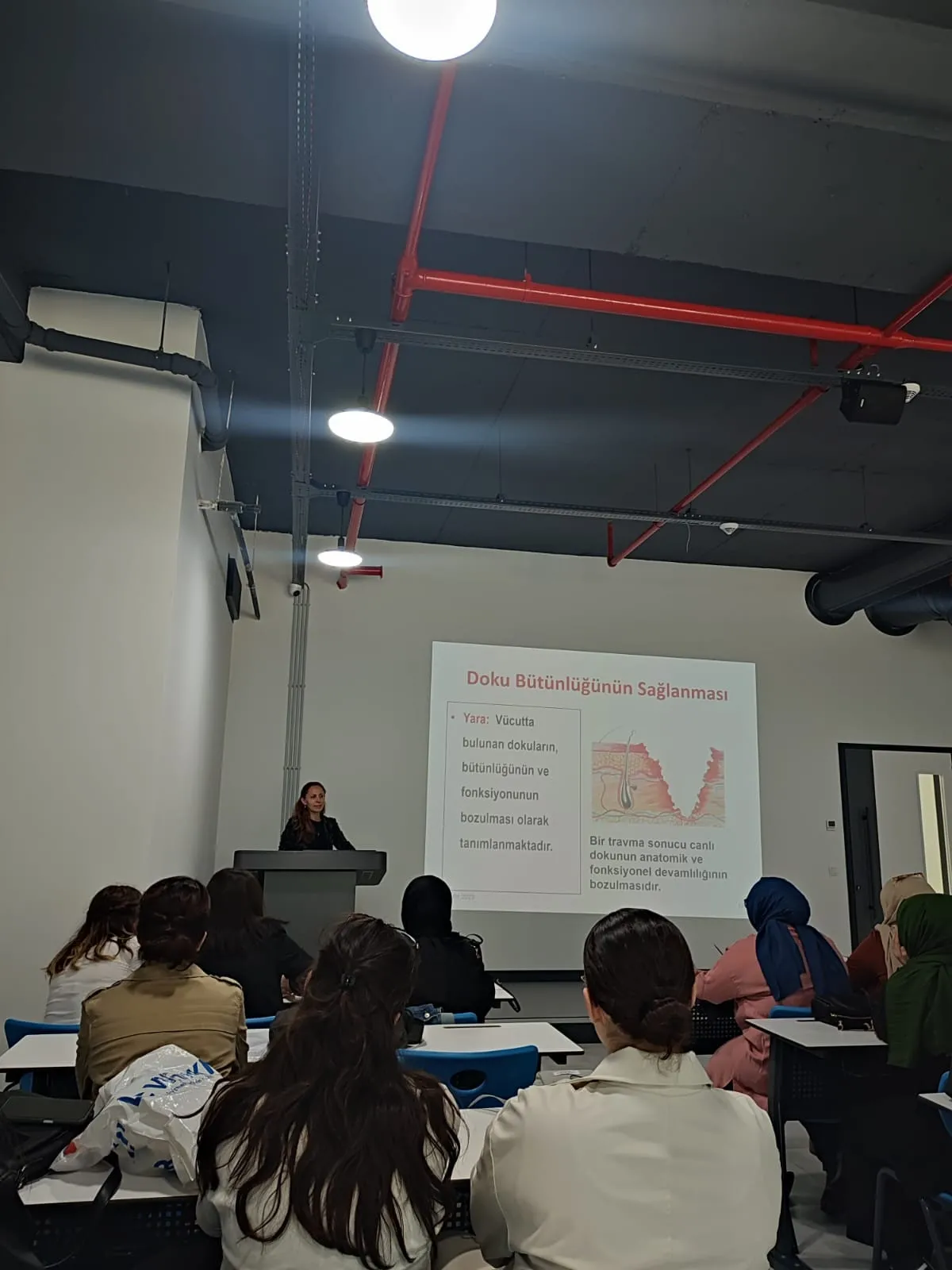 Lokman Hekim Üniversitesi Sağlık Bilimleri Fakültesi Hemşirelik Bölümü etkinlikleri devam ediyor. Hemşirelik Esasları Anabilim Dalı tarafından düzenlenen Hemşirelikte Doku Bütünlüğünün Korunması ve Yara Bakımı Semineri Hacettepe Üniversitesi Erişkin Hastanesi Yanık Ünitesi Sorumlu Hemşiresi Sayın Burcu YALANIZ'ın katılımı ile gerçekleştirilmiştir. Seminerde "Yara Bakımı Ünitesi, Yara Bakımı Hemşiresi görev, yetki ve sorumlulukları, devam eden uygulamalar ve kanıta dayalı güncel yaklaşımlar" gibi konulara değinilmiş, hasta ve hasta yakınları ile ilgili vaka örnekleriyle uygulama alanına ışık tutmuştur. Katılımcılarımıza teşekkür ederiz.
