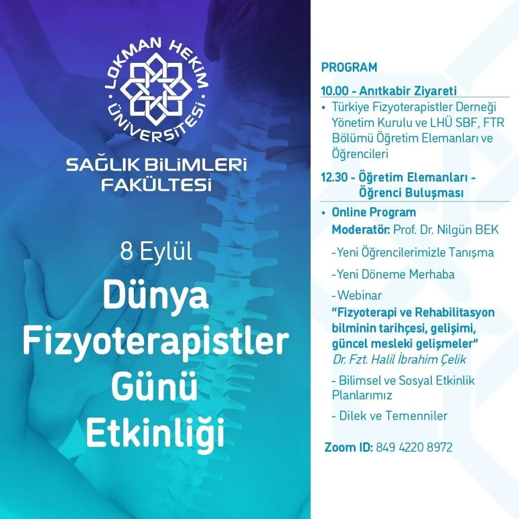 08 Eylül Dünya Fizyoterapistler Günü kapsamında, Türkiye Fizyoterapistler Derneği Yönetim Kurulu ve Lokman Hekim Üniversitesi Fizyoterapi ve Rehabilitasyon Bölümü öğretim elemanları ve öğrencileri ile birlikte Anıtkabir ziyareti gerçekleştirildi. Anıtkabir ziyareti ardından ise bölümümüz öğrencileriyle online kutlama ve aramıza yeni katılan öğrencilerimize hoş geldin programı gerçekleştirildi.
