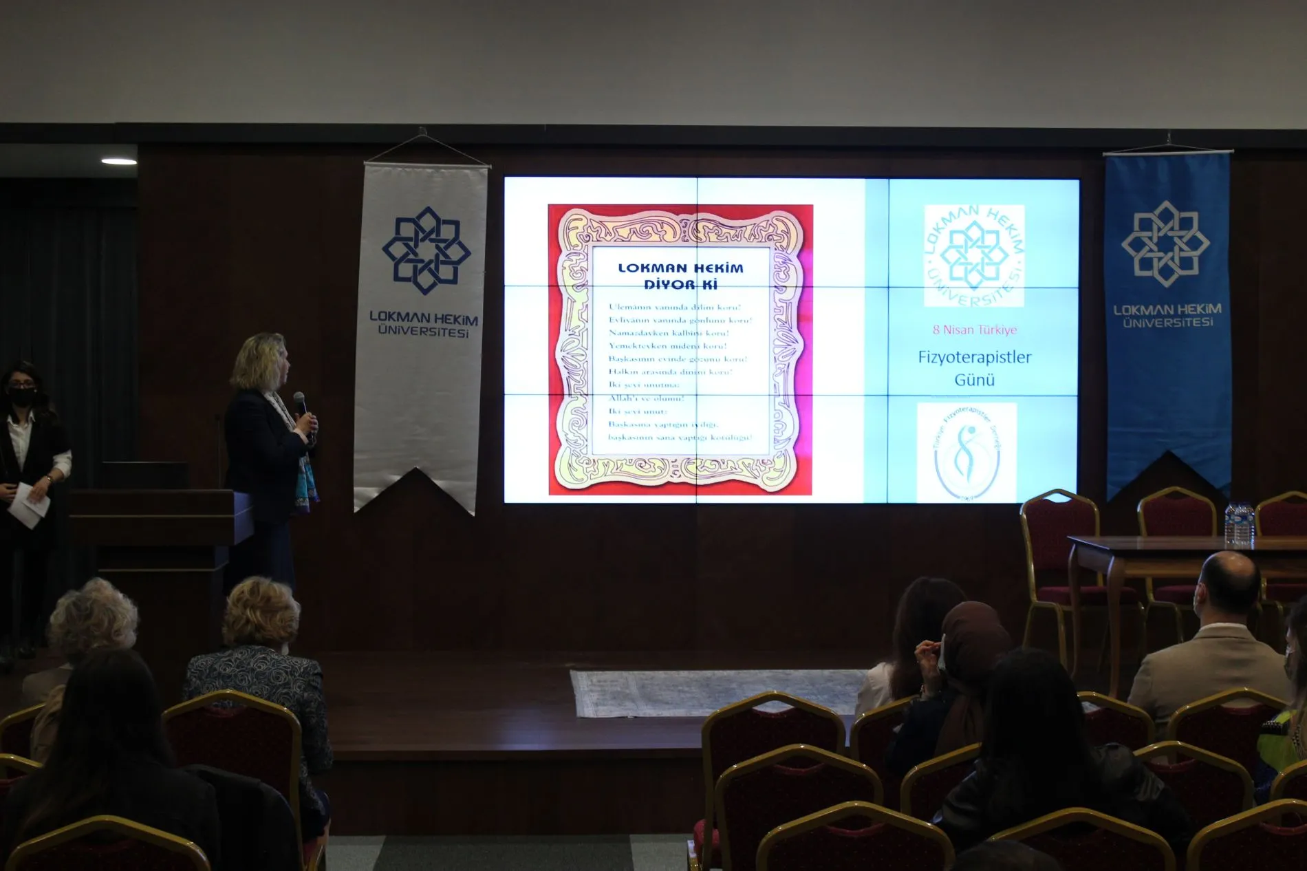 Lokman Hekim Üniversitesi Sağlık Bilimleri Fakültesi Fizyoterapi ve Rehabilitasyon Bölümü ve MİA Yaşam Merkezi iş birliği ile Fizyoterapi Uygulamalarına Temel Oluşturan Multidisipliner Yaklaşımlar Paneli bugün MİA Yaşam Merkezi konferans salonunda gerçekleştirildi. Üniversitemiz Mütevelli Heyet Başkanı Dr. Mehmet ALTUĞ, Rektör Prof. Dr. Bülent GÜMÜŞEL ve Fizyoterapi Rehabilitasyon Bölümü akademisyen ve öğrencilerinin katıldığı panelde 8 Nisan Fizyoterapistler günü kutlandı ve alanında uzman birçok konuşmacı yer aldı.