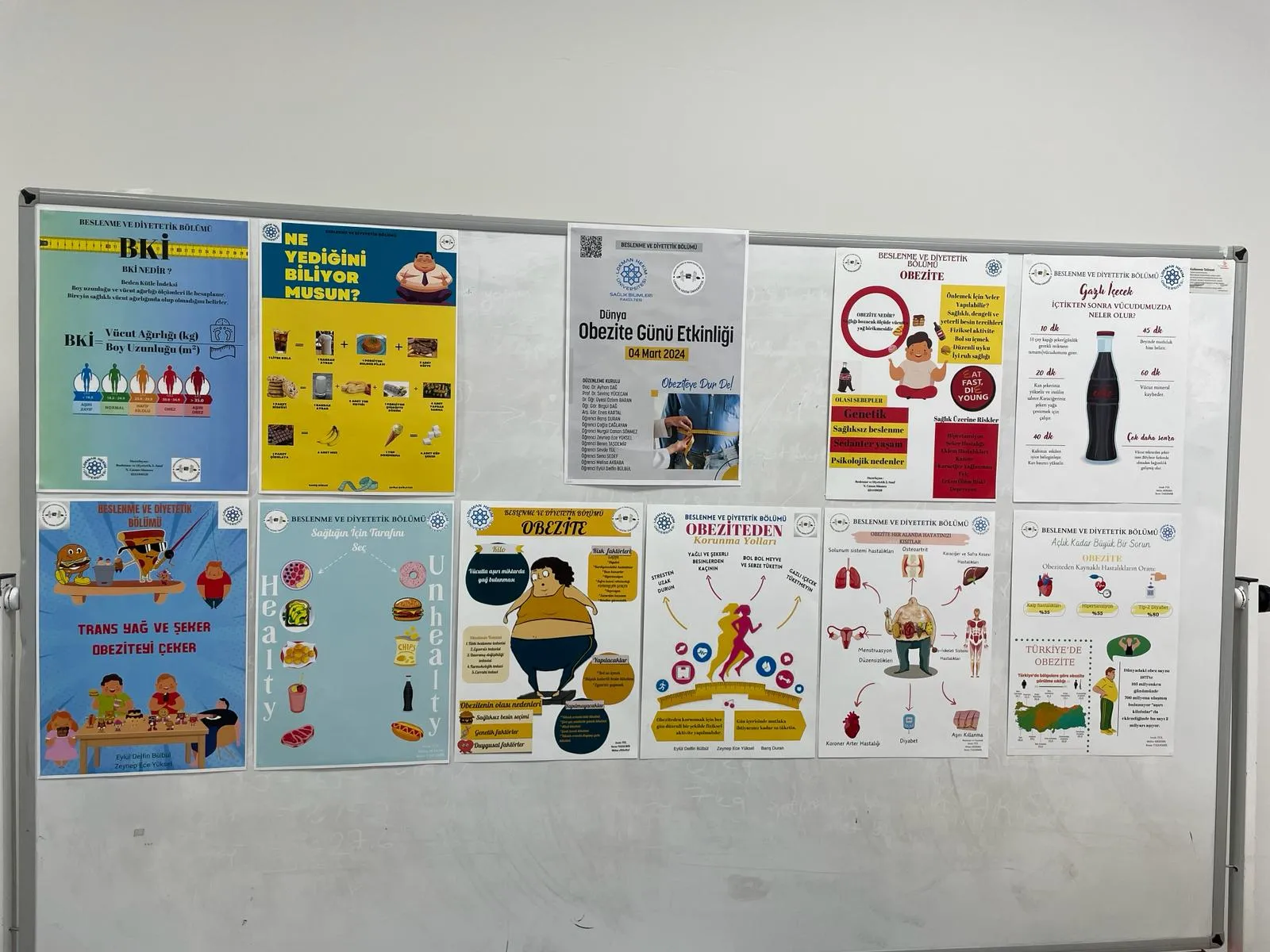 4 Mart Dünya Obezite günü kapsamında üniversitemiz C blok 1. katta saat 11.30 - 14.00 saatleri arasında beslenme ve diyetetik bölümü öğrencileri afiş ve sunumlarını akademisyen ve öğrencilerimizin katılımı ile gerçekleştirdi.