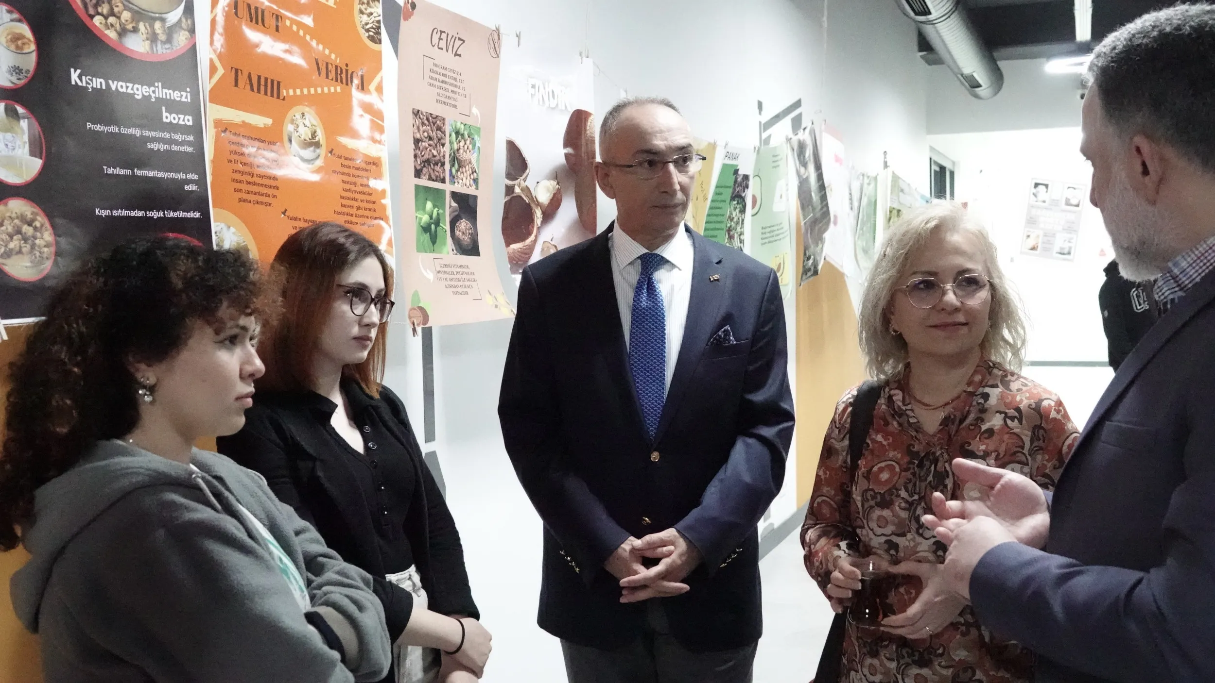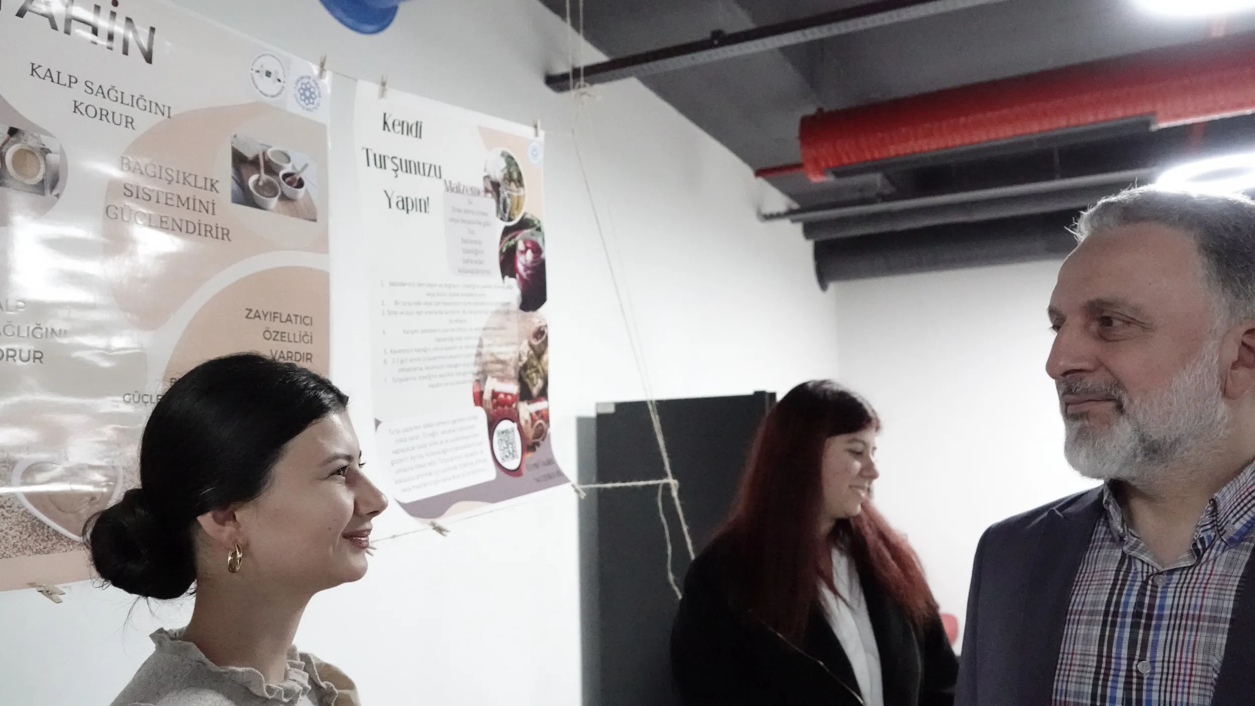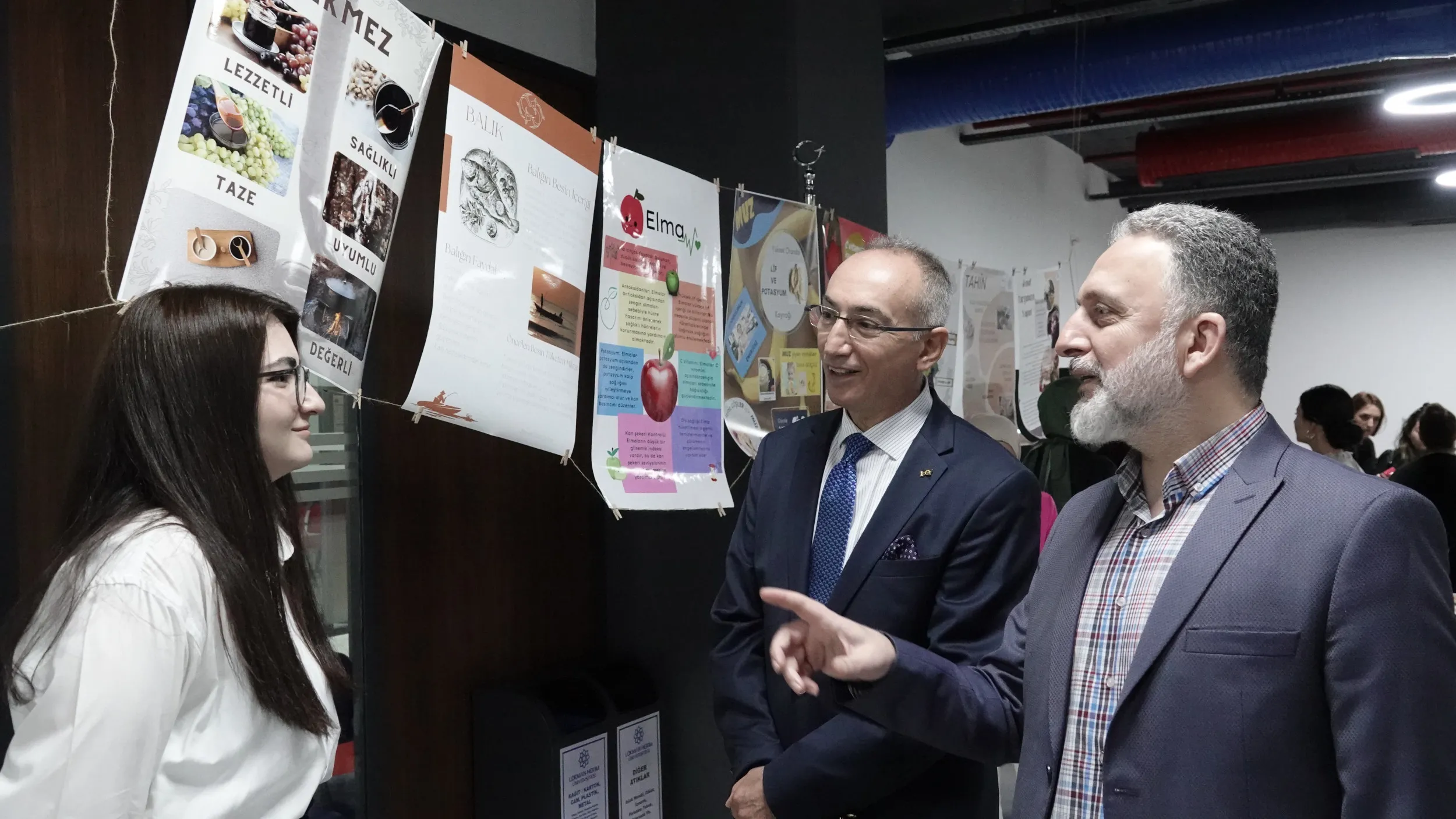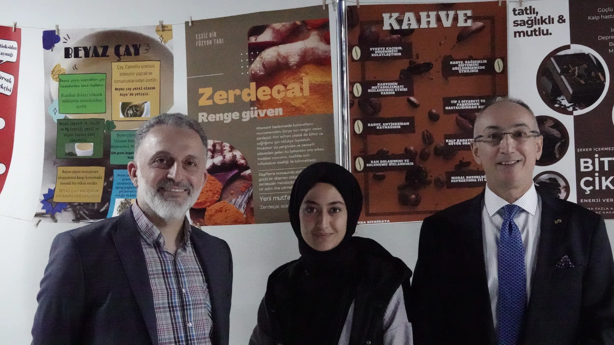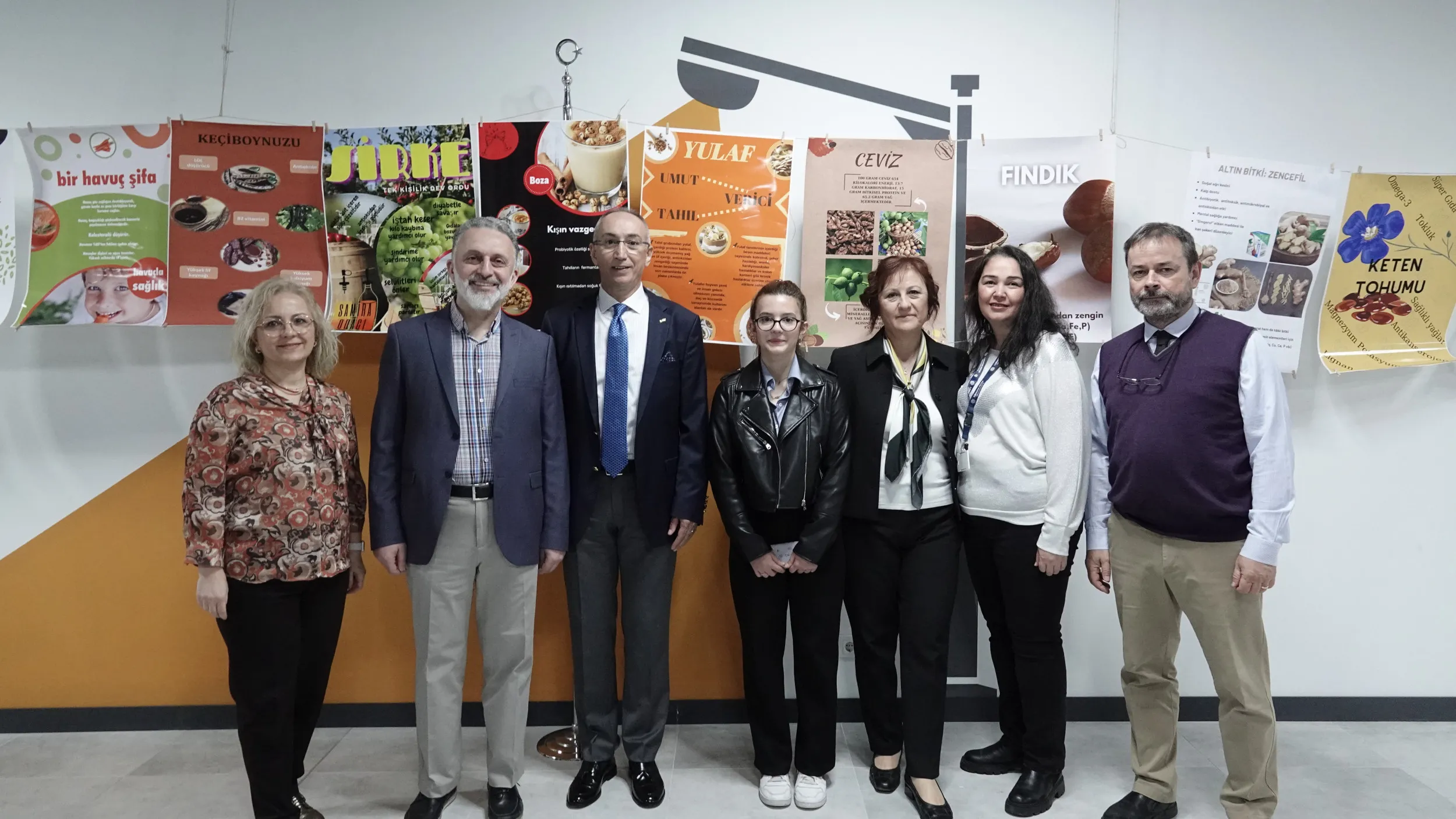 Mütevelli Heyet Başkanımız Dr. Mehmet ALTUĞ, Rektör Yardımcımız Prof. Dr. İsmet ŞAHİN, Sağlık Bilimleri Fakültesi Dekanı Prof. Dr. Nilgün BEK, Beslenme ve Diyetetik bölüm Başkanı Doç. Dr. Ayhan DAĞ, ders sorumlusu Öğr. Gör. Birgül DAĞ, beslenme ve diyetetik bölümü akademisyen ve öğrencilerinin katılımı ile gerçekleştirilen poster sergisinde 1. sınıf öğrencileri posterleri hakkında bilgi verdiler.