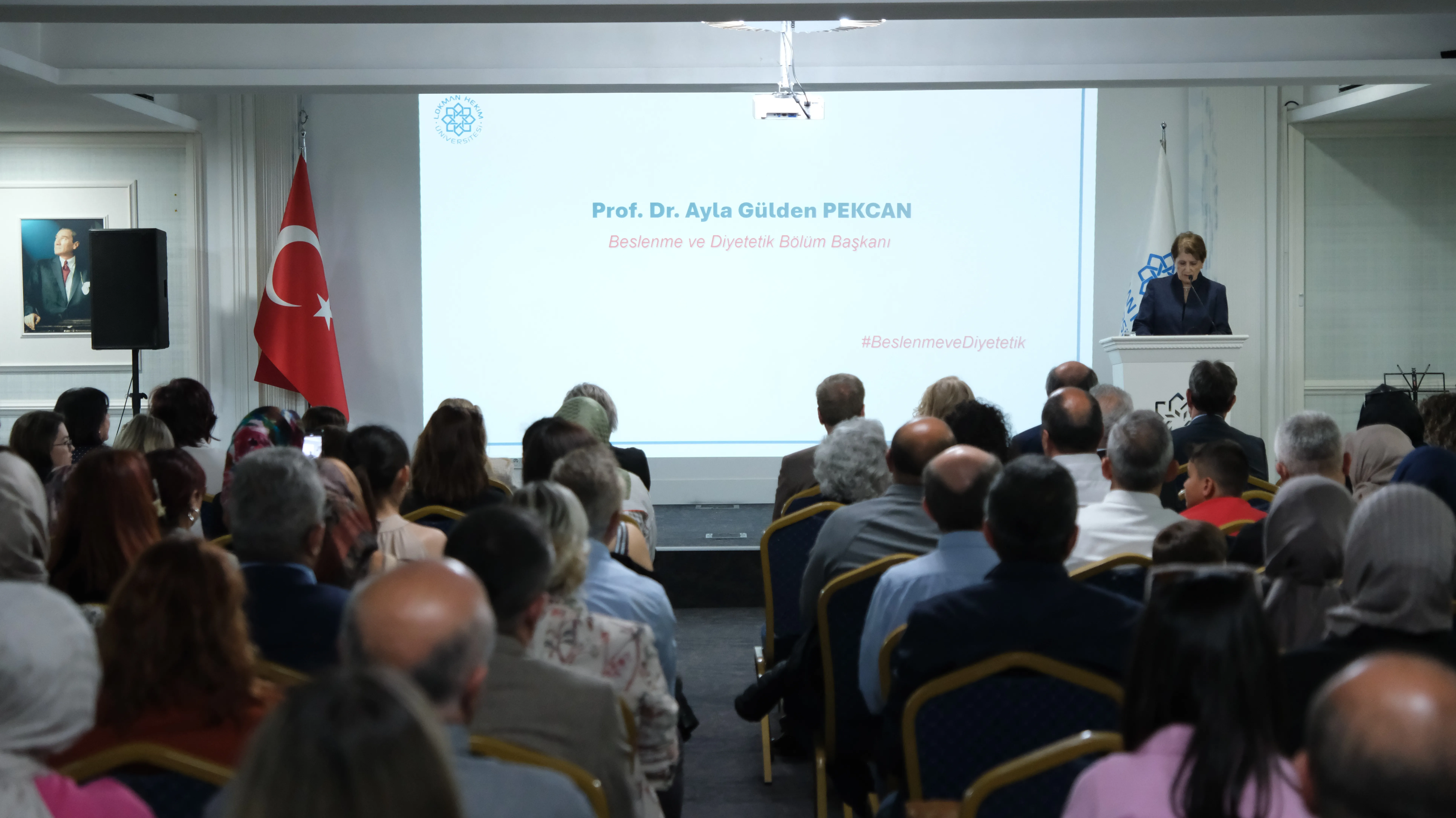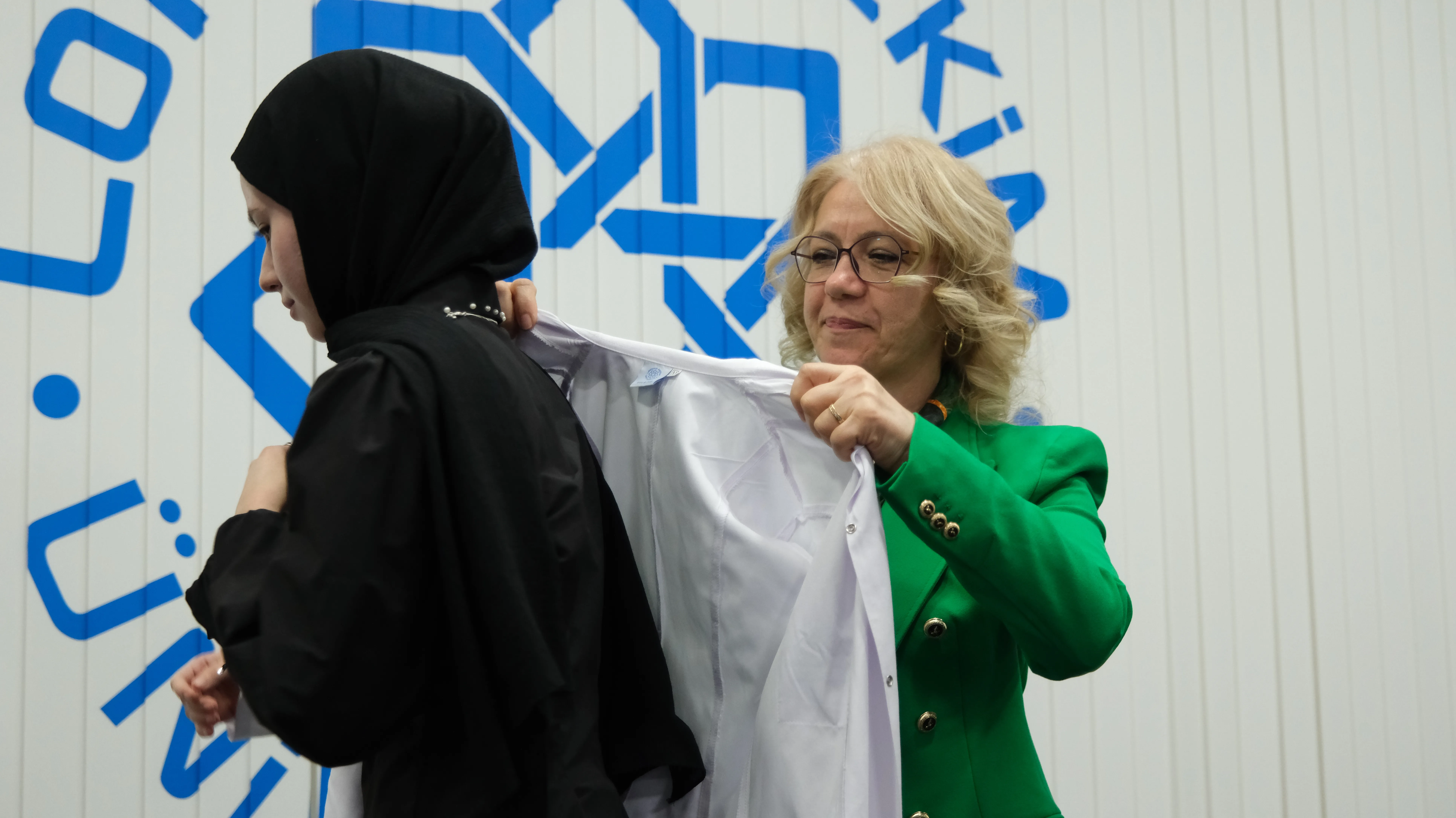 Öğrencilerin beyaz önlüklerini giydiği an ise törenin zirvesiydi. Her biri, gelecekte birer beslenme uzmanı olma yolunda beyaz önlüğü sadece bir giysi değil; bilgi, sorumluluk ve güvenin sembolü olarak taşımanın gururunu yaşadı.