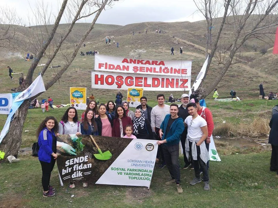 Ankara’ nın Yenimahalle ilçesinde gerçekleşen Ankara Fidan Şenliğine Çevre Kuruluşları Derneği ile işbirliği yapan, üniversitemiz Öğrenci Topluluklarından Sosyal Farkındalık ve Yardımlaşma Topluluğu “Sende Bir Fidan Dik” sloganıyla katıldı. Üniversite Mütevelli Heyeti Başkanı Mehmet ALTUĞ’ un da katıldığı fidan şenliğinde öğrenciler doğa ile iç içe vakit geçirirken, fidanlar toprakla buluşturuldu. LHÜ Sosyal Farkındalık ve Yardımlaşma Topluluğu; “Çevreyi ve yarınları daha güzel kılmak adına örnek olmak ve farkındalık oluşturmak için buradayız” dediler.