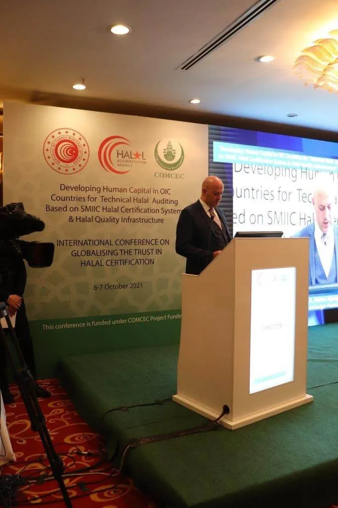 İSEDAK Proje Finansmanı 8. Uygulama Dönemi kapsamında Türkiye Helal Akreditasyon Kurumu (HAK) tarafından yürütülen “İİT Ülkelerinde SMIIC Helal Belgelendirme Sistemi ve Helal Kalite Altyapısı Temelli Helal Teknik Denetimleri İçin İnsan Kaynağının Geliştirilmesi” başlıklı projenin konferans etkinliği 6-7 Ekim 2021 tarihlerinde HAK ev sahipliğinde gerçekleştirildi.
