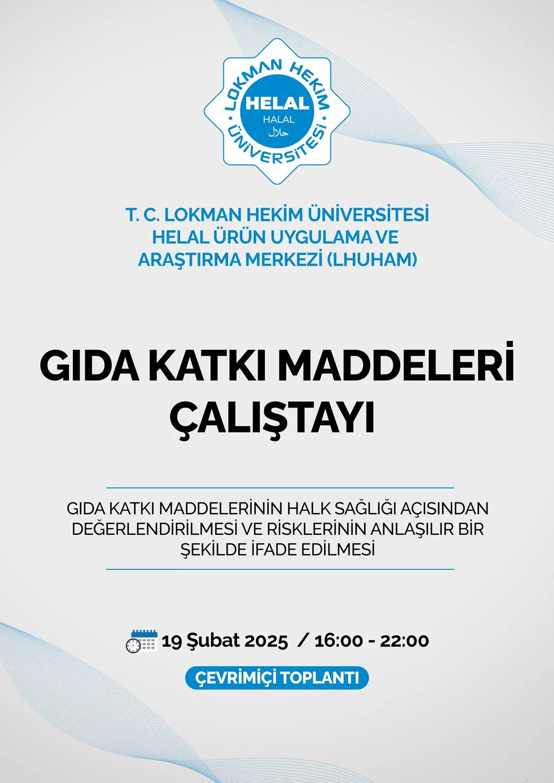 Lokman Hekim Üniversitesi Helal Ürün Uygulama Merkezi bünyesinde 19 Şubat 2025 tarihinde “Gıda Katkı Maddelerinin Halk Sağlığı Açısından Değerlendirilmesi ve Risklerinin Anlaşılır Bir Şekilde İfade Edilmesi” konulu çalıştay gerçekleştirildi.